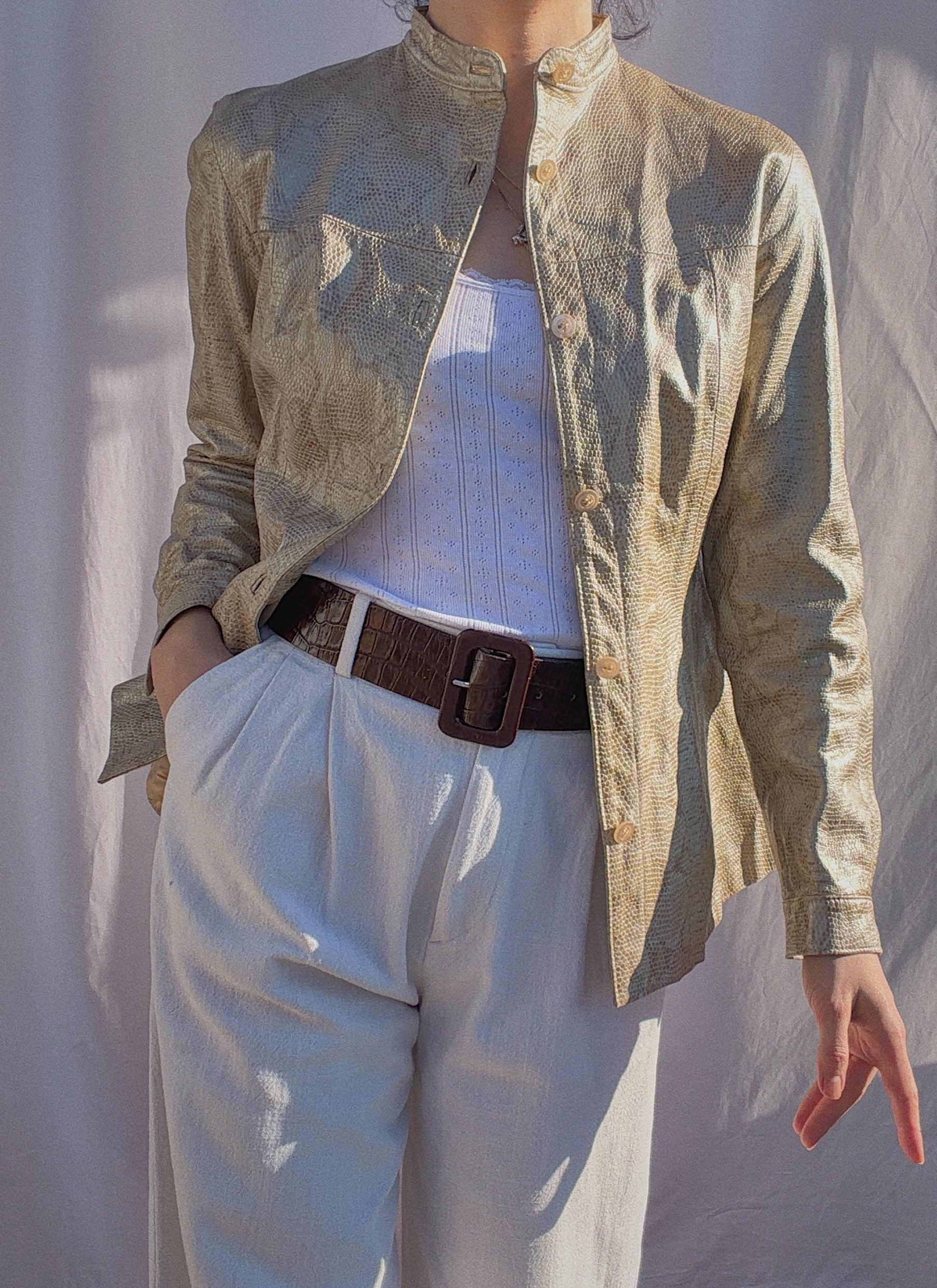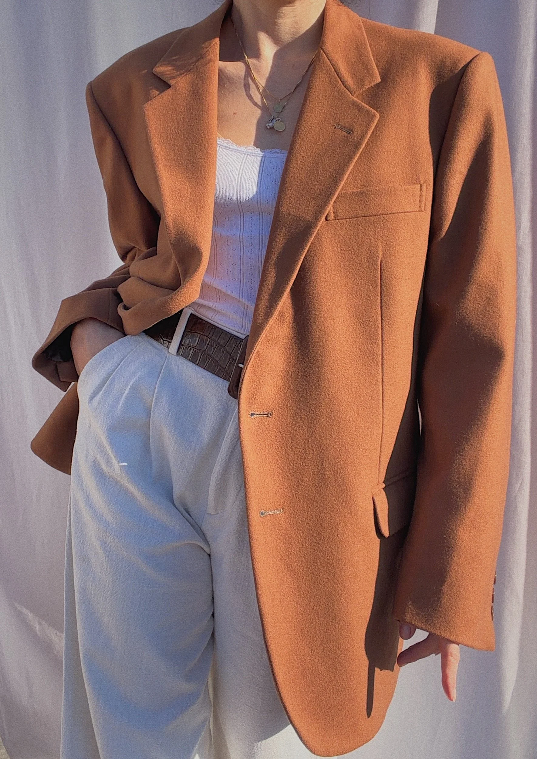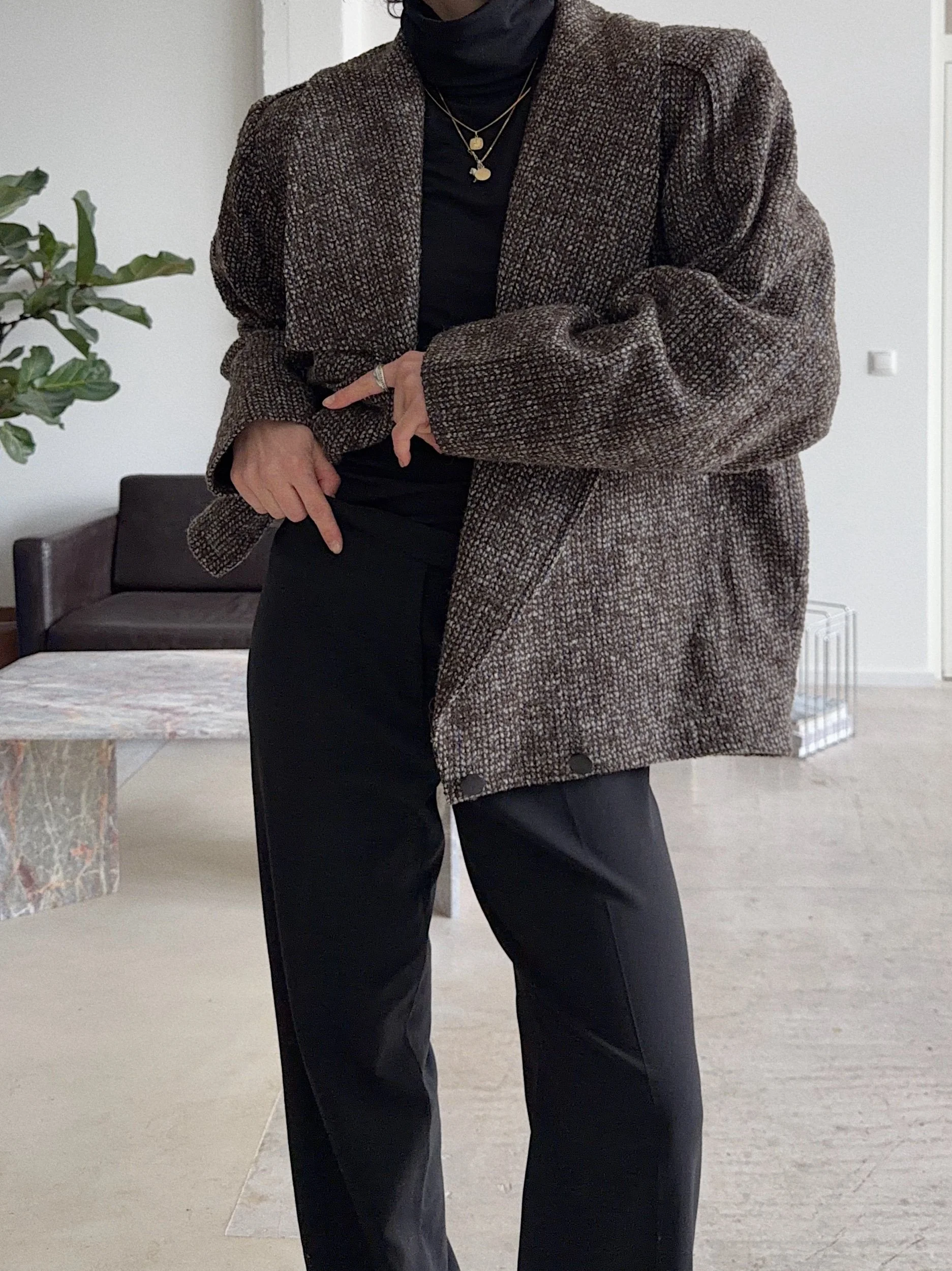 Shop Categories: Alle Apparel Accessoires Objects Alle Apparel Accessoires Objects Vintage 70s Chunky Leather Belt Brown €39.00 Vintage Bohemian Leather Waist Belt Brown €39.00 SOLD OUT Vintage Timeless Woven Leather Belt Brown €39.00 Vintage XL Silk Scarf Pastel Print €32.00 Vintage Suede Vest Bohemian Silver Hardware €52.00 Vintage Suede Jacket Dark Brown €60.00 Vintage Elegant Merino Cashmere Cape Brown €97.00 SOLD OUT Vintage 90s Leather Blazer Beige €65.00 Vintage 90s Preppy Structured Wool Blazer €50.00 Vintage 90s Cashmere Wool Blazer Checked Khaki Green €50.00 Vintage 90s Light Long Blazer Checked €52.00 Vintage Oversized Wool Blazer Unisex Brown €59.00 Vintage Shetland Wool Sweater Cream €53.00 Vintage Soft V-Neck Knit Cardigan Cream €53.00 Vintage Cable Knit Unisex Oversized Sweater Grey €50.00 Vintage Handmade Bohemian Knit Cardigan Grey €65.00 Vintage 90s Knit Sweater Striped €54.00 Vintage Y2K Etro Shirt Unisex Light Blue Jacquard Pattern €50.00 Vintage Y2K Satin Silk Top Ruffles €45.00 Vintage Y2K Fitted Snake Print Leather Jacket Cream Gold €55.00 Vintage Romantic Raw Silk Blouse Cream €45.00 Vintage 90s Structured Trenchcoat Beige €70.00 Vintage 90s Bohemian Puffed Sleeves Structrued Jacket Black €63.00 Vintage Y2K Classic Elegant Waistcoat Dark Grey €42.00 Vintage 80s Satin Silk Elegant Bohemian Blouse Cream €60.00 Vintage 90s Oversized Unisex Denim Shirt Middle Blue €40.00 Vintage 90s Romantic Lace Silk Blouse Cream €53.00 Vintage 90s Poet Core Knit Vest Checked €40.00 Vintage 90s Laurèl Denim Shirt €45.00 Vintage 90s Classic Wool Sweater Striped €50.00 Vintage 90s Romantic Lace Top High Neck Cream €39.00 Vintage 80s Elegant Classic Fox Fur Coat €205.00 Vintage 90s Sleek High Neck Top €39.00 Vintage 90s Sleek Long Blazer Checked €50.00 Vintage 90s Oversized Boxy Jacket €63.00 Vintage 80s Elegant Wool Blazer Navy Embellished €80.00 Vintage Cropped Boxy 80s Blazer Black Embellished €53.00 Vintage Austrian Wool Cardigan Flower Embroidery €80.00 Vintage Classic Wool Beret Chocolate Brown €30.00 Vintage 90s High Waist Pleated Pants Checked €40.00 Vintage Y2K Low Waist Straight Leg Wool Pants Pinstripes €40.00 Vintage Y2K Soft Leather Jacket Black €90.00 Vintage Oversized Unisex Handmade Wool Sweater Blue Flecked €50.00 Vintage Y2K Soft Belted Suede Jacket Used Look €80.00 Vintage 80s Elegant Structured Wool Blazer €57.00 Vintage Elegant Structrued Max Mara Weekend Blazer Herringbone €92.00 Vintage 80s Silhouette Wool Fleece Coat Bold Red €80.00 Vintage 80s Strucutred Elegant Office Attire Blazer Brown-Black €57.00 Vintage Y2K Mid Waist Leather Pants Flared Black €85.00 Vintage Bohemian Suede Skirt Chocolate €45.00 Vintage Y2K Max Mara Knit Top Black €69.00 Vintage 90s Elegant High Waist Pencil Skirt Flecked €35.00 Vintage Y2K Micro Mini Skirt Checked €39.00 Vintage 90s Elegant Pleated Wool Skirt Cream €40.00 Vintage Y2K Romantic Bohemian Silk Dress Paisley €60.00 Vintage 90s Elegant High Neck Cable Knit Wool Sweater Beige €50.00 Vintage 90s Penny Lane Leather Coat €117.00 Vintage 90s Oversized Wool Jacket Colour-Blocking €90.00 Vintage Y2K Minimalist Aspesi Trenchcoat Light Beige €80.00 Vintage Y2K Colourful Chunky Knit Cardigan Fur Collar €70.00 Vintage 90s Classic Napoleon Oversized Maxi Wool Coat Dark Blue €130.00 Vintage 80s Elegant Napoleon Statement Coat Brushed Wool Dark Blue €130.00 Vintage Cashmere Knit Shirt Orange-Red €75.00 Vintage 80s Bohemian Faux Fur Blazer Black €50.00 Vintage Elegant 80s High Neck Belted Wool Jacket Herringbone €89.00 Vintage 90s Marella Corduroy Blazer Soft Brown-Khaki €59.00 Vintage 90s Max Mara Elegant Minimalist Long Blazer €85.00 Vintage 90s Elegant Wool Coat XL Faux Fur Collar €110.00 Vintage 90s Classic Oversized Maxi Wool Coat Grey €139.00 Vintage 90s Elegant Wool Short Coat Grey €93.00 Vintage 90s Cropped Bomber Leather Jacket Black €80.00 Vintage 90s Oversized Unisex Shearling Jacket Aviator Brown €130.00 Vintage 70s Shearling Vest Penny Lane Cream €83.00 Vintage 90s Boxy Shearling Jacket Brown Unisex €125.00 Vintage 90s Rare Maxi Shearling Statement Coat Chocolate Brown €160.00 Vintage Y2K Soft Belted Leather Jacket Burned Brown €85.00 Vintage Y2K Brushed Suede Coat Fur Trim Beige €93.00 Vintage Y2K Short Coat Brushed Mohair Wool Checked €90.00 Vintage 1990s Elegant Wool Statement Coat Fur Trim €145.00 Vintage Y2K Structured Bouclé Blazer Fringe €53.00 Vintage Oversized Shetland Wool Sweater Cream €55.00 Vintage Pleated Wool Skirt Blue Checked (M/L) €40.00 Vintage Y2K Satin Silk Skirt (M) €35.00