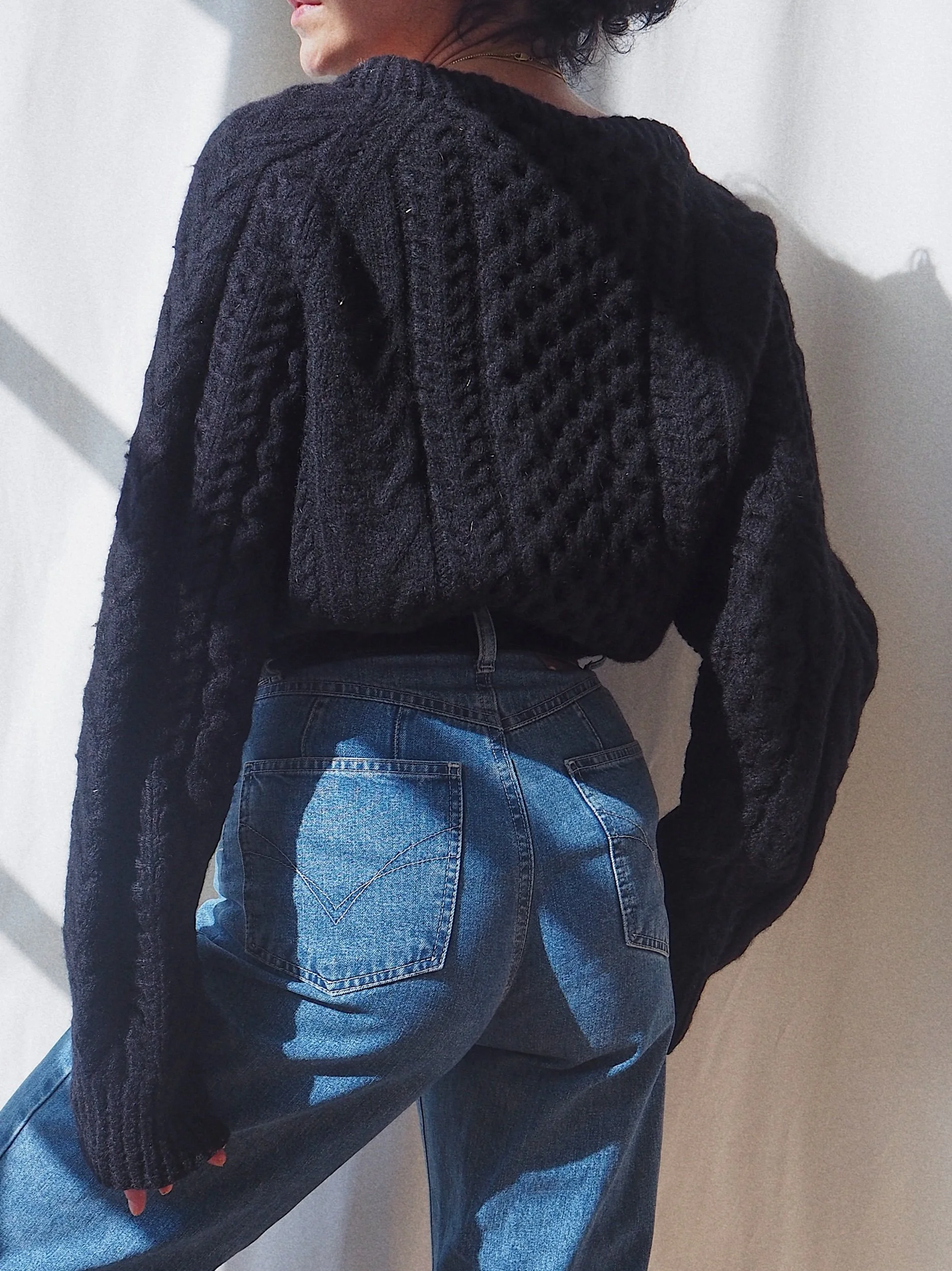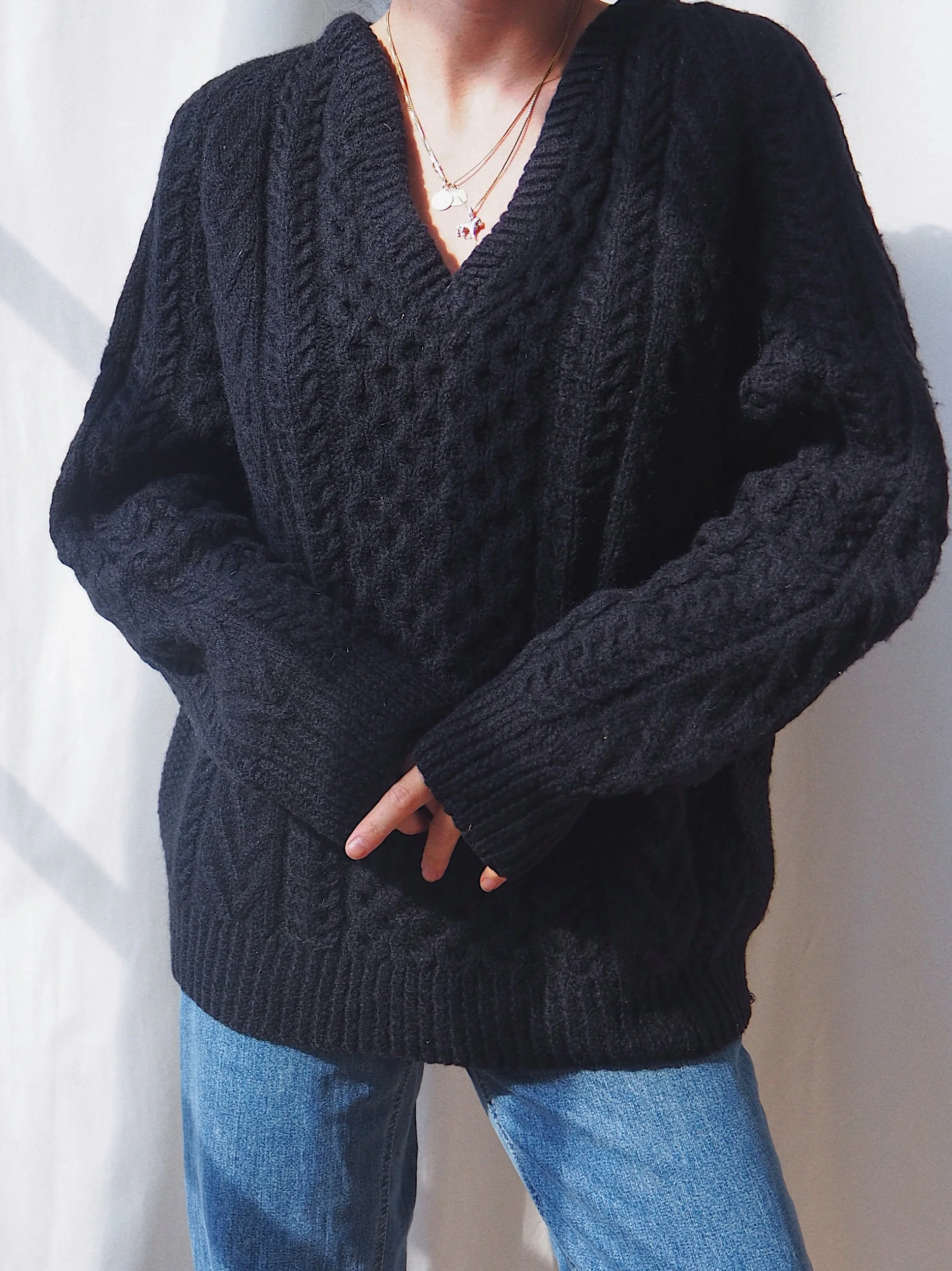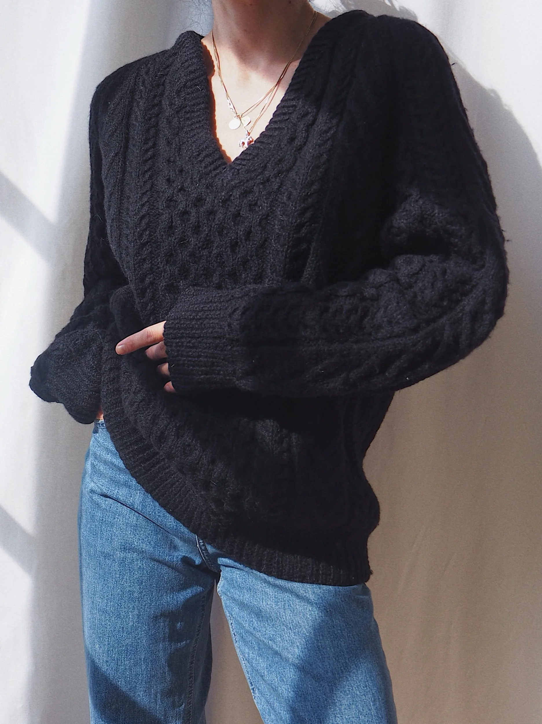 Vintage 90s Chunky Fisherman Wool Sweater Black