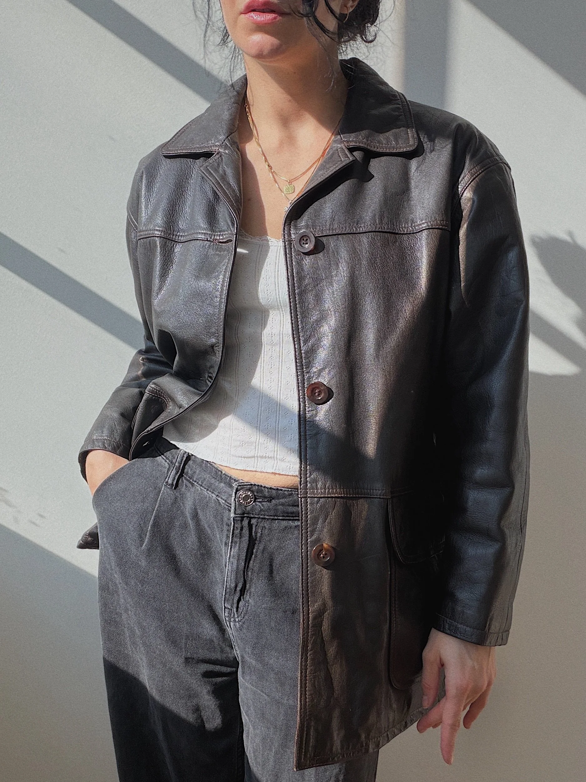 Classic genuine leather jacket, middle weight leather, fully lined, tagged as size M