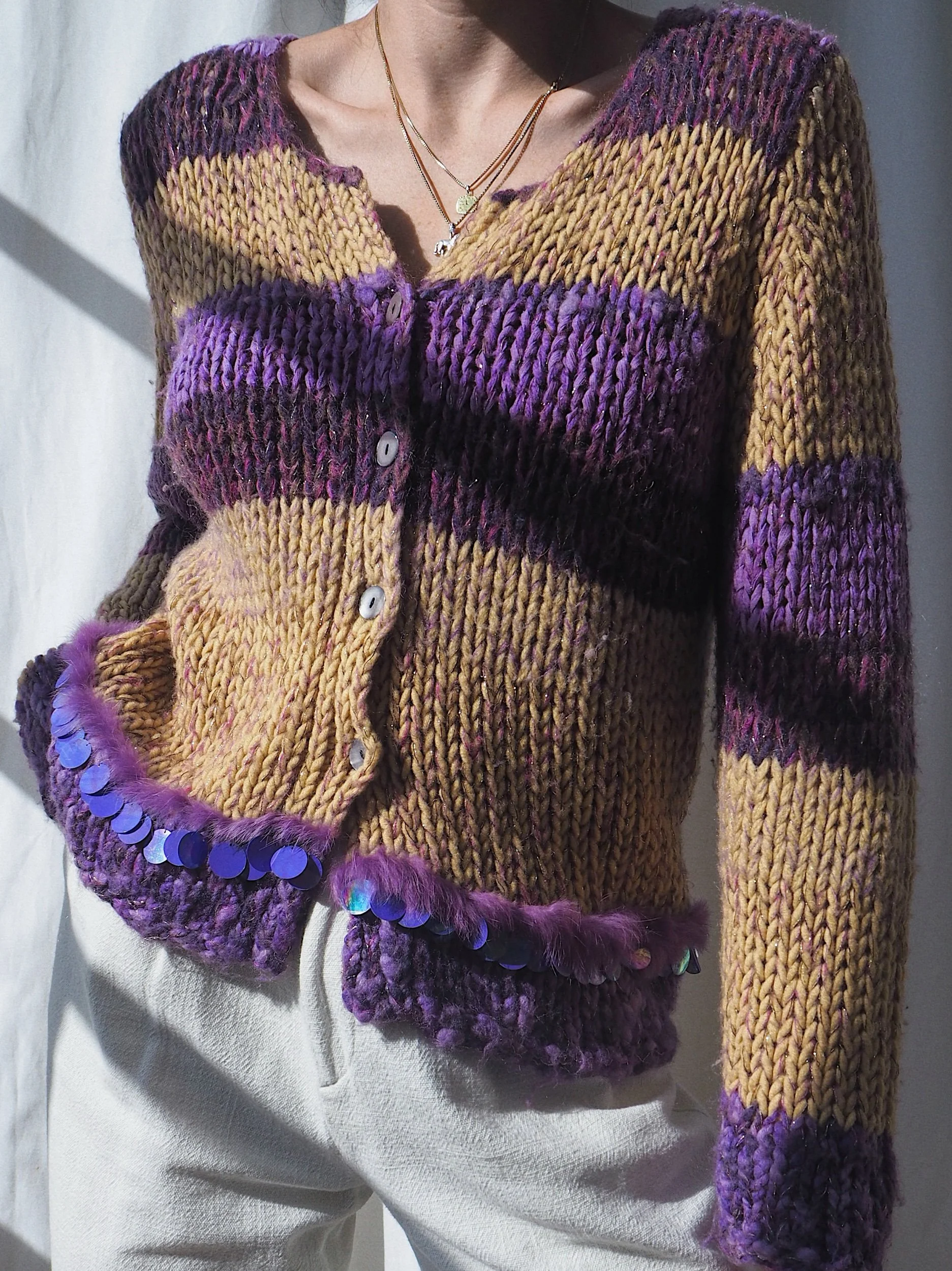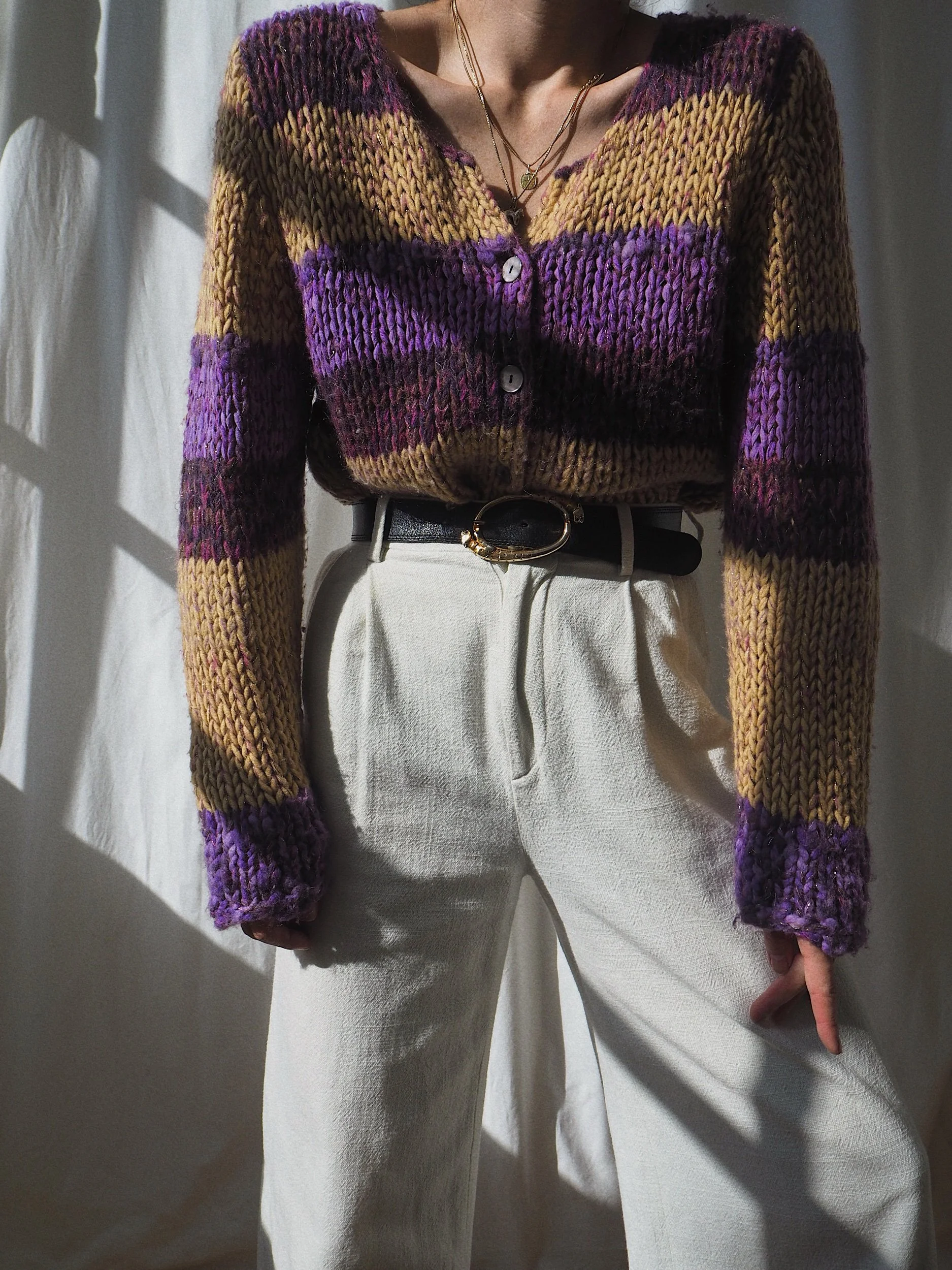 Vintage 90s Cute Chunky Cardigan Lilac Beige