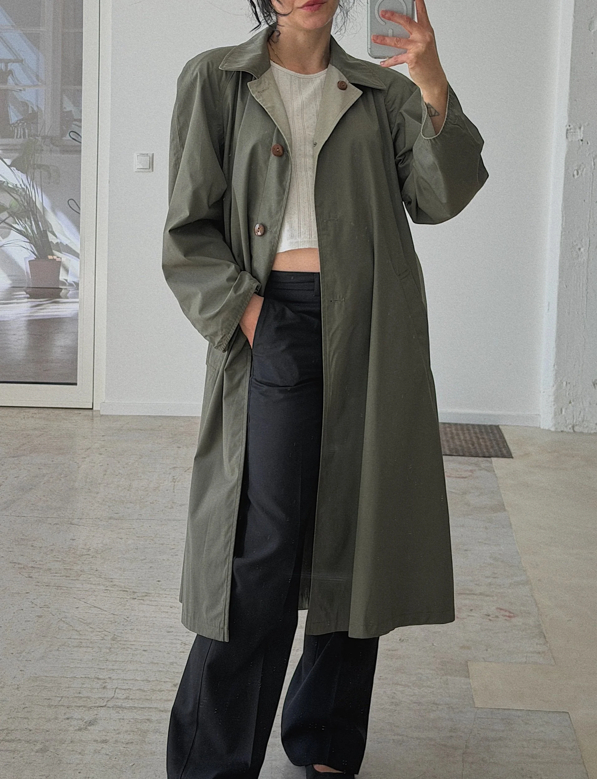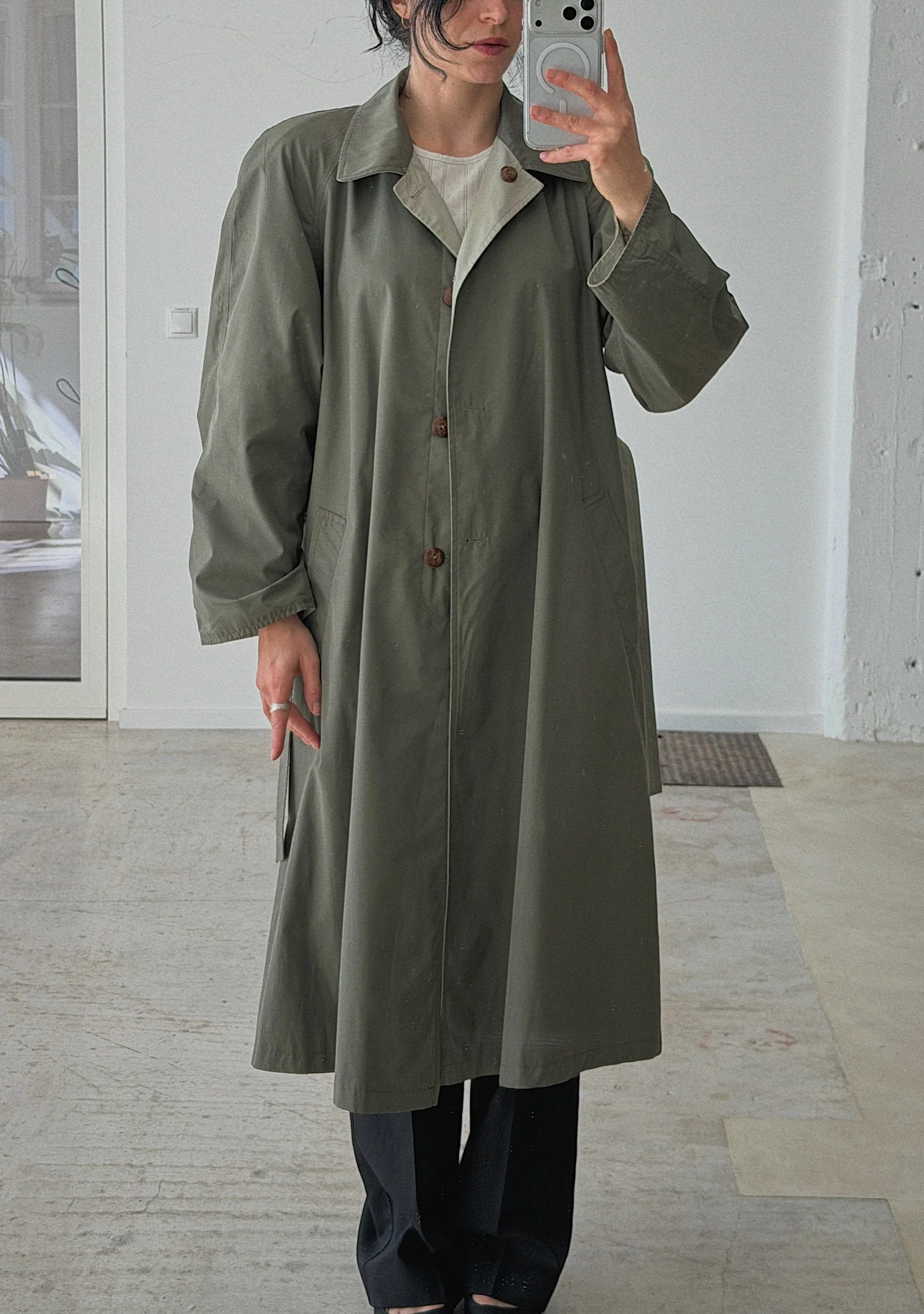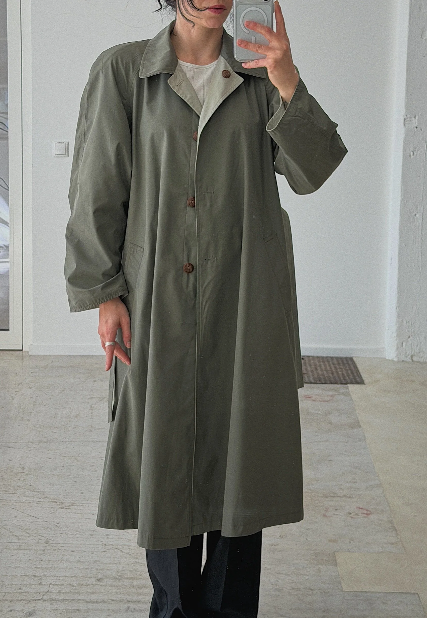 double-face trench, matching belt in both colours, pockets on both sides, a true classic & versatile piece for everyday life, cotton polyester blend fabric