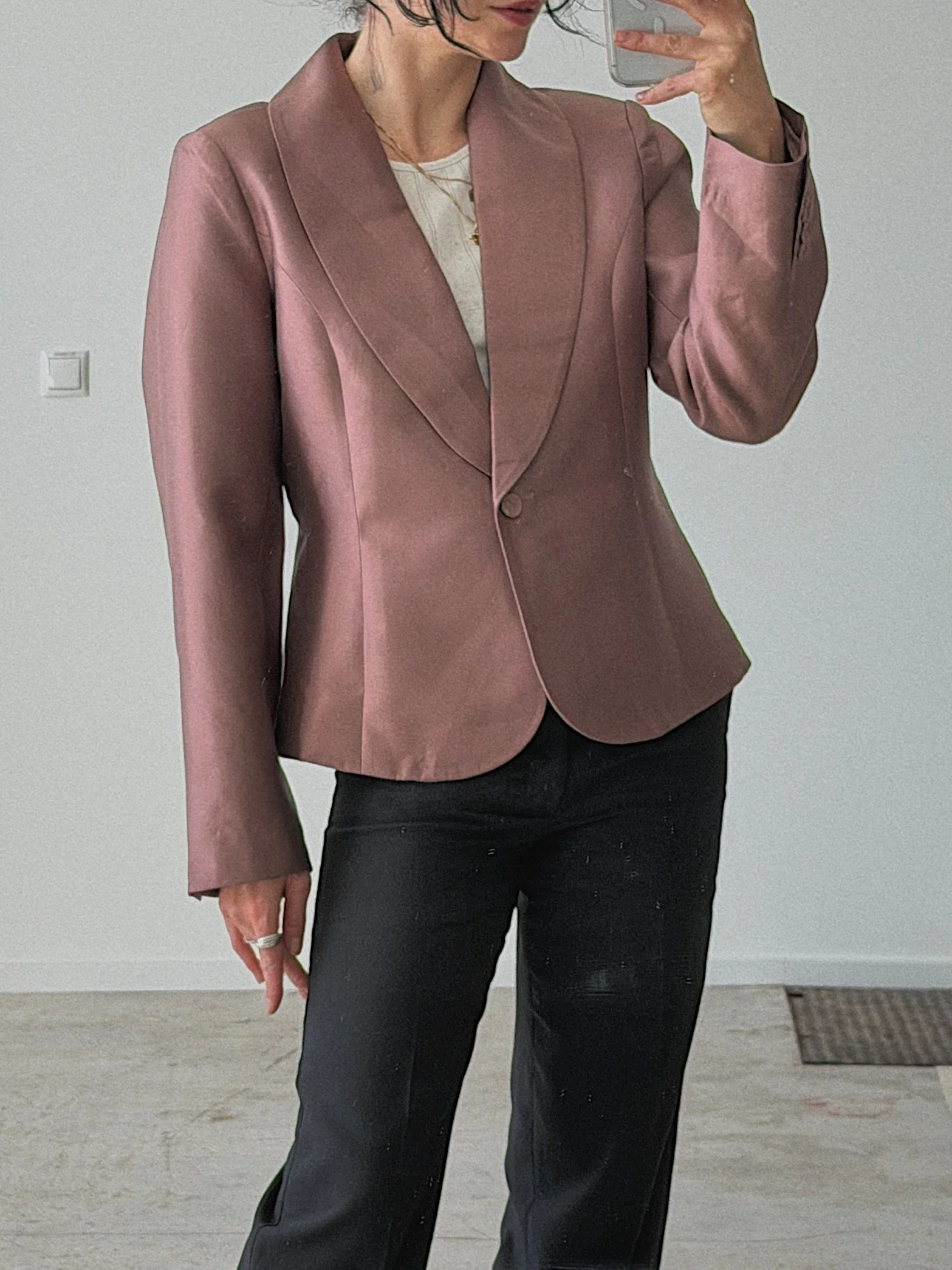 85% silk 15% merino wool, lining 100% acetat, very light shoulderpads