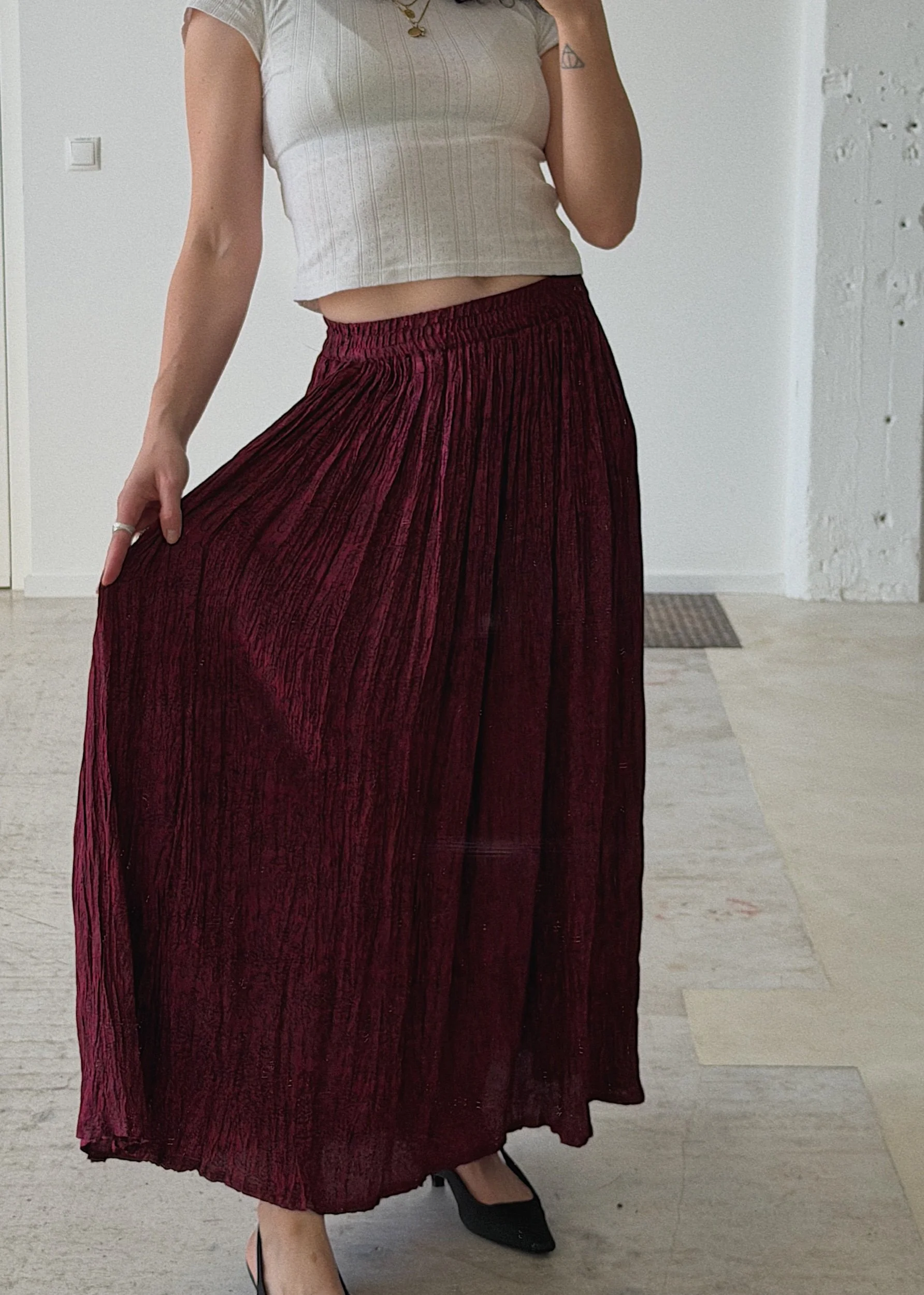 stretchy waist, pleated skirt with jacquard pattern in dark magenta, DeVille size 44