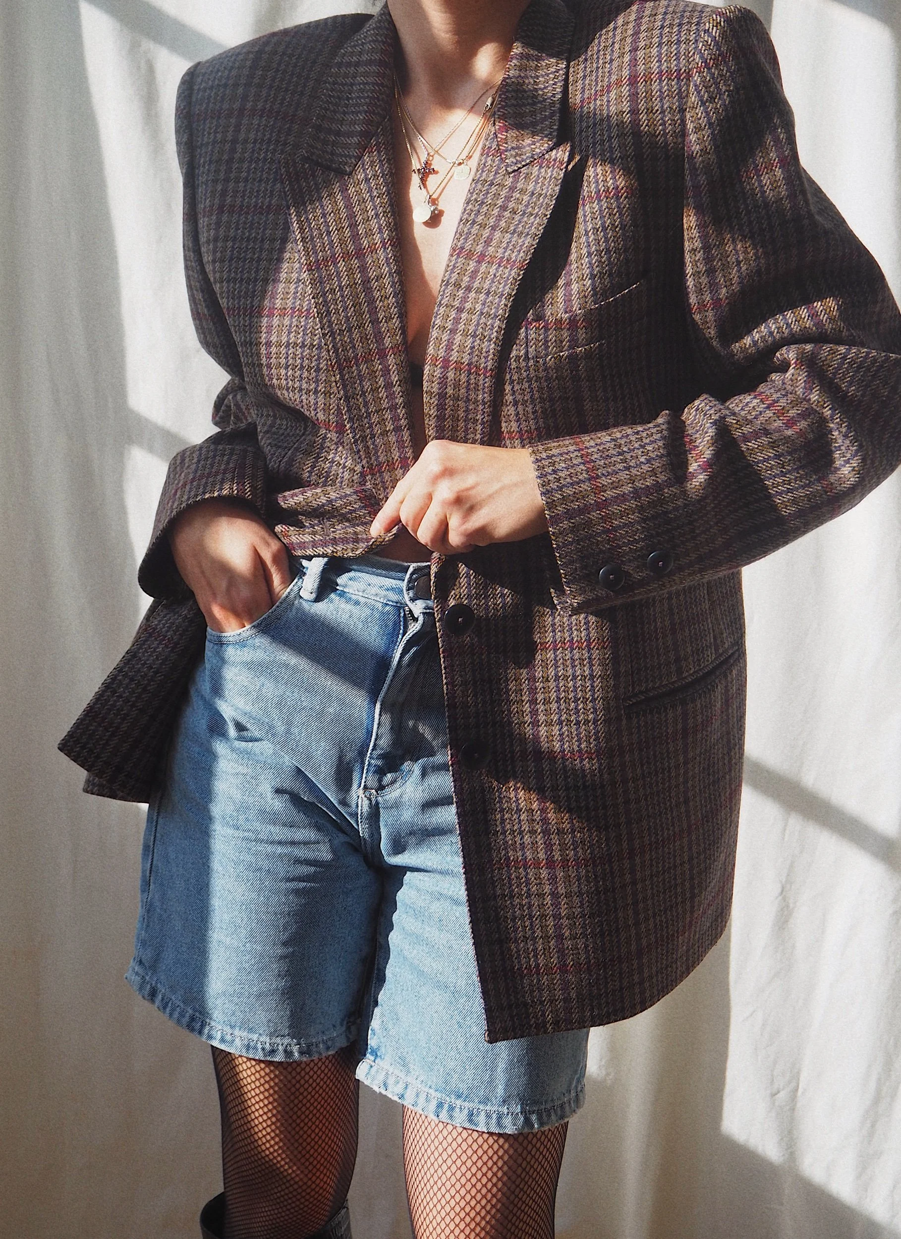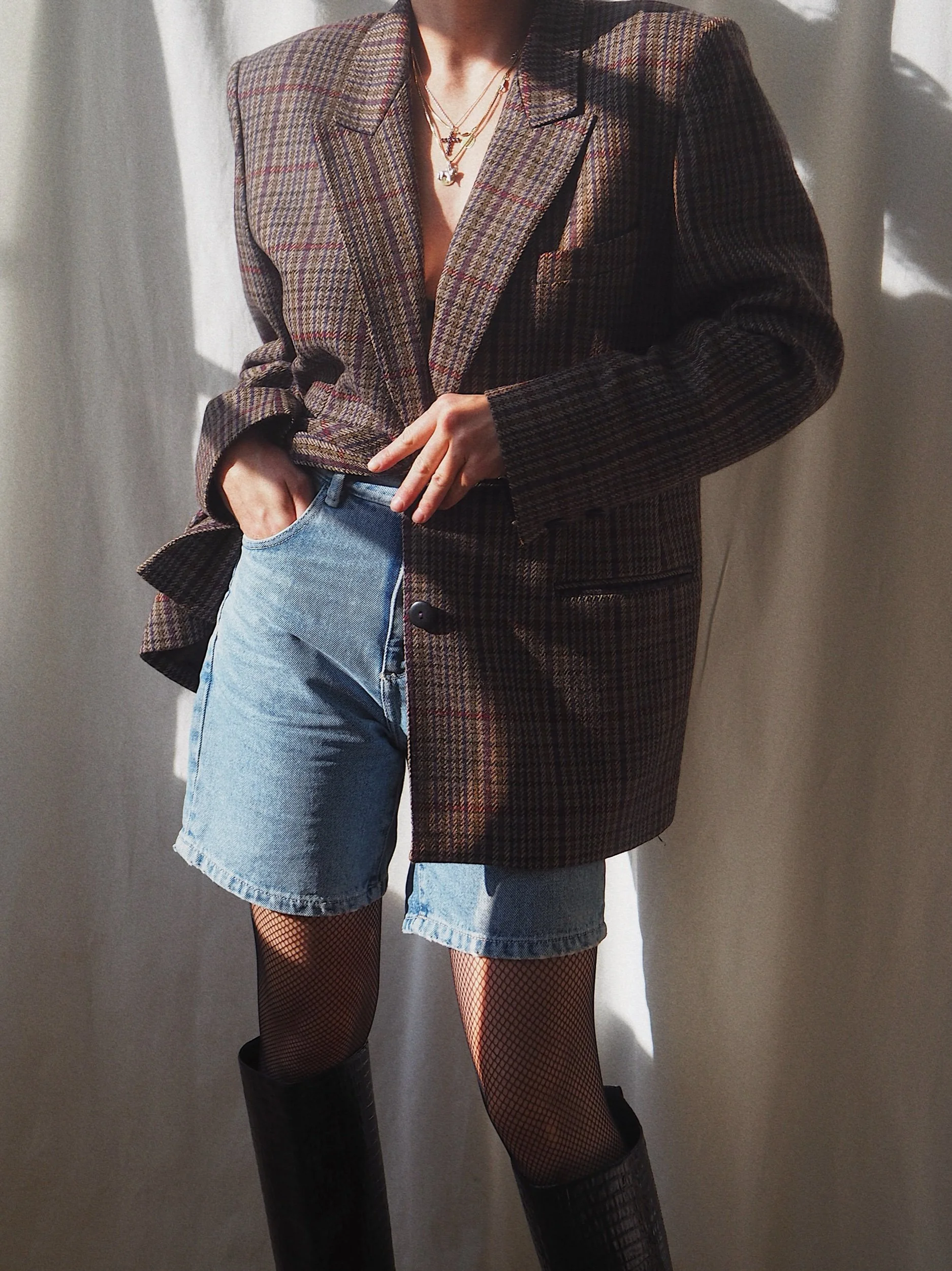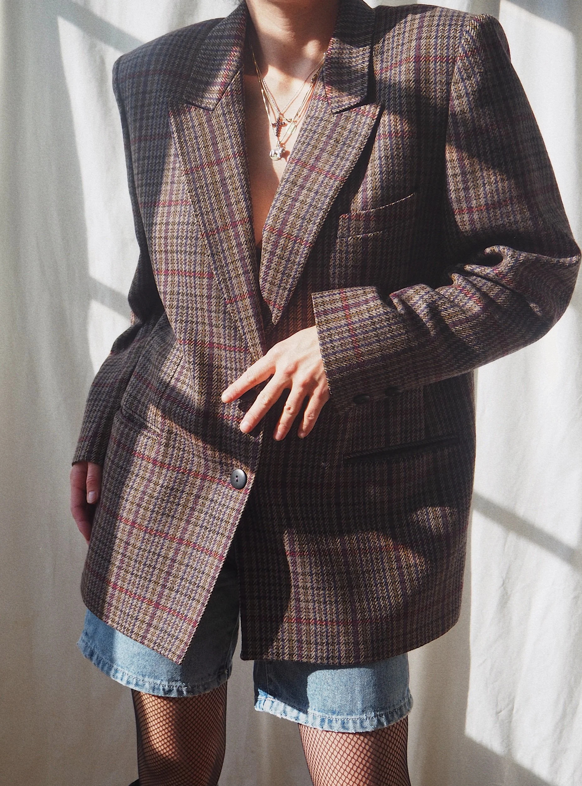 Vintage 90s Italian Wool Blazer Checked