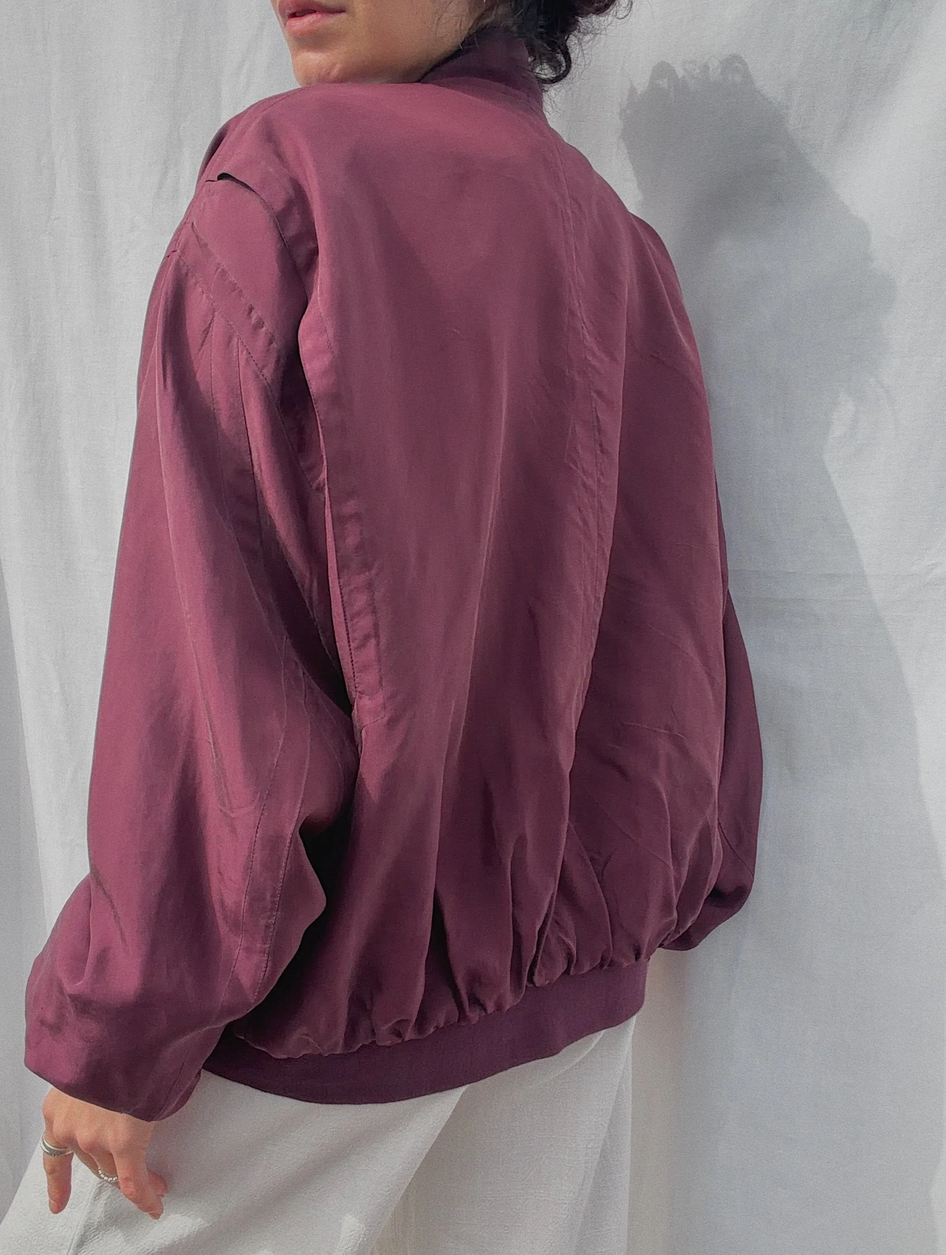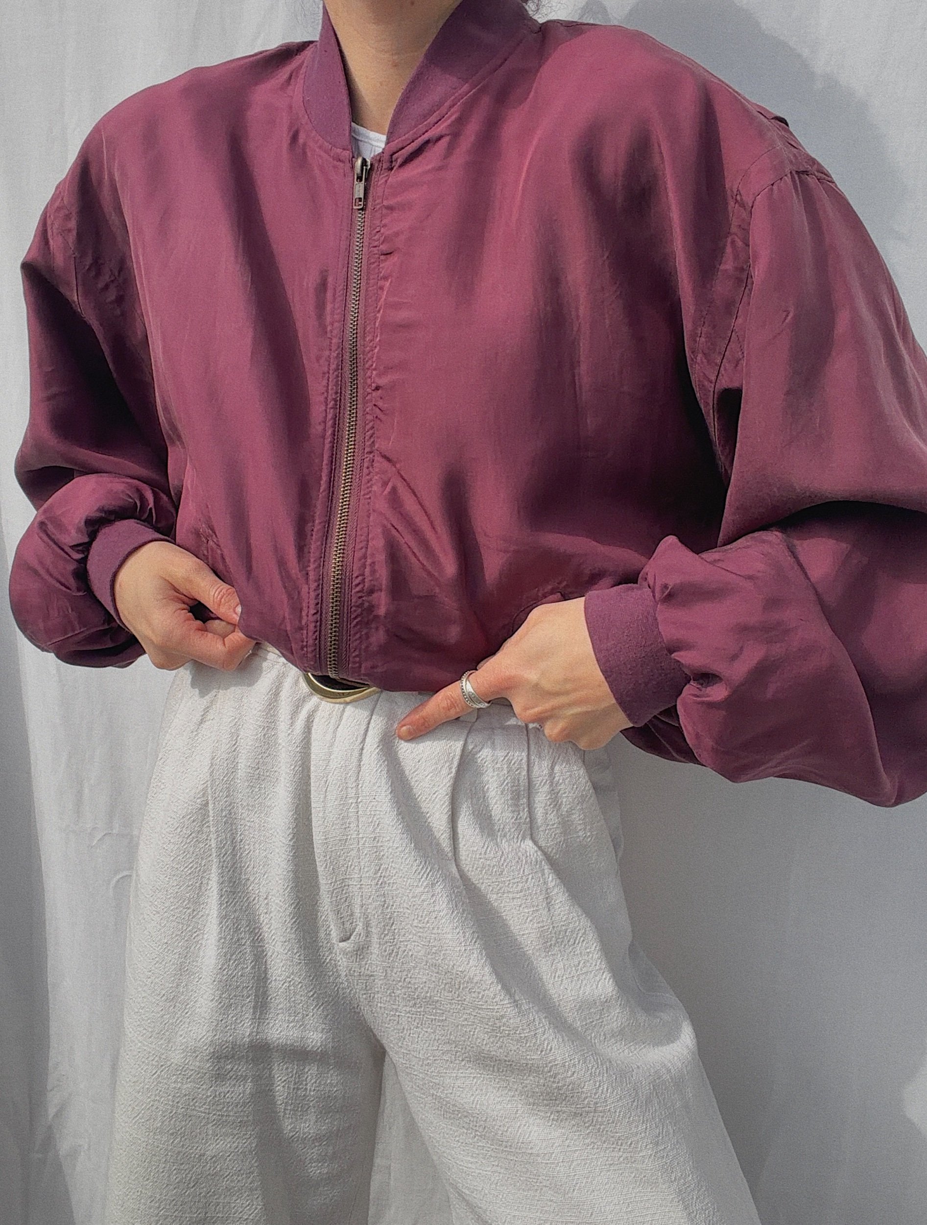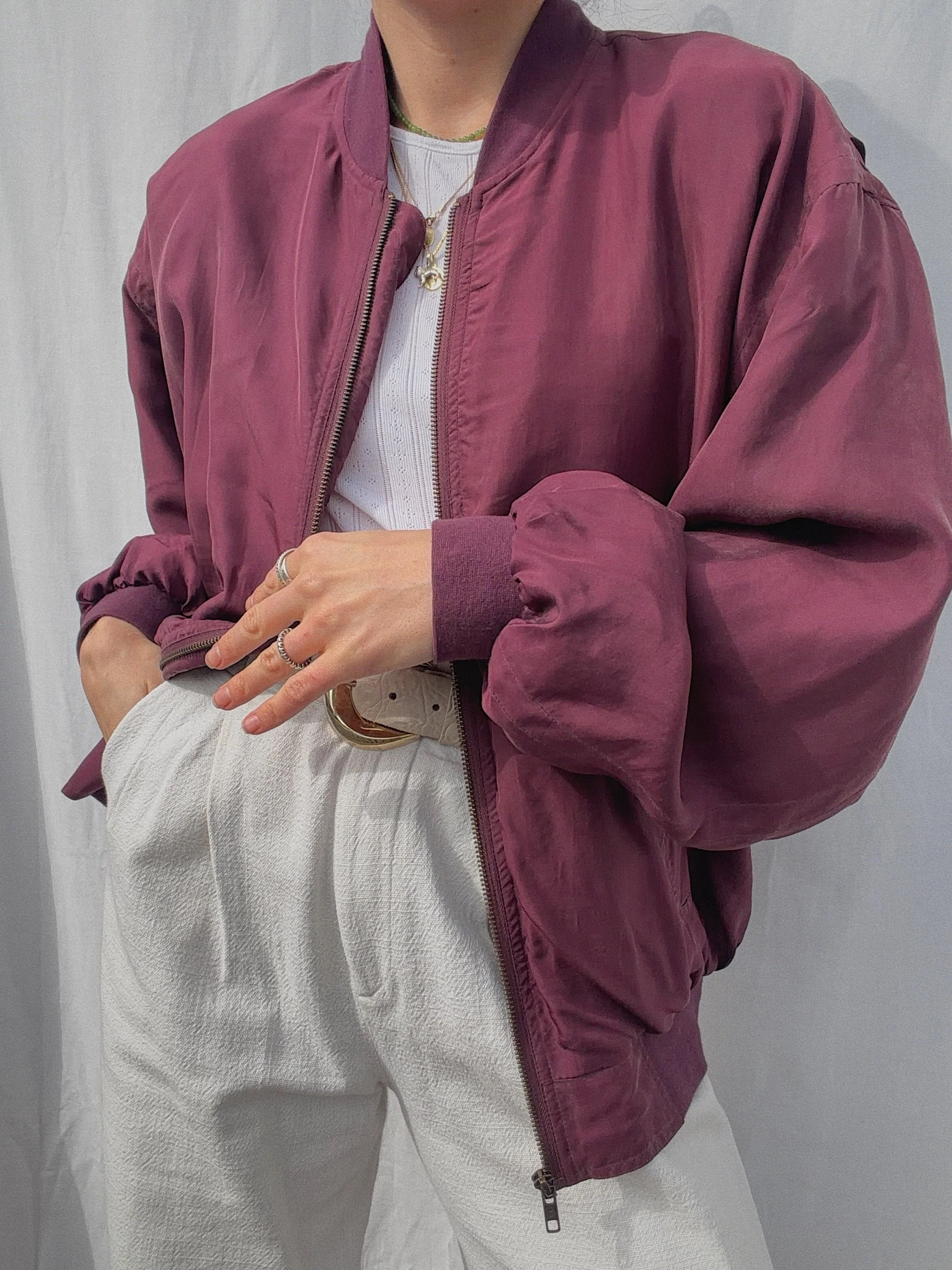 a light weight silk bomber, unisex/ oversized, lined, shoulderpads