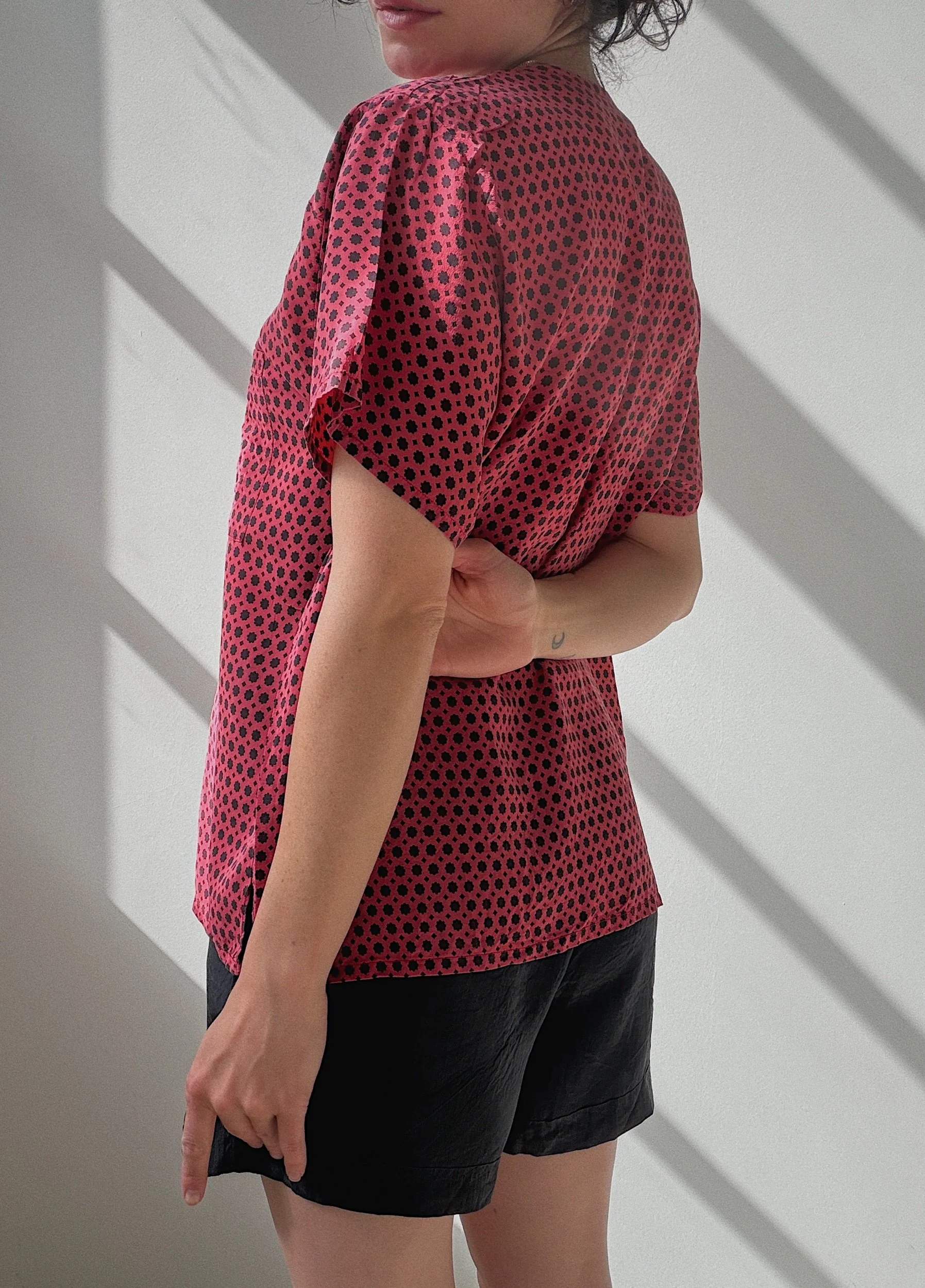 Recommended for sizes XS-L depending on desired drape, model is 165cm & a size XS/S