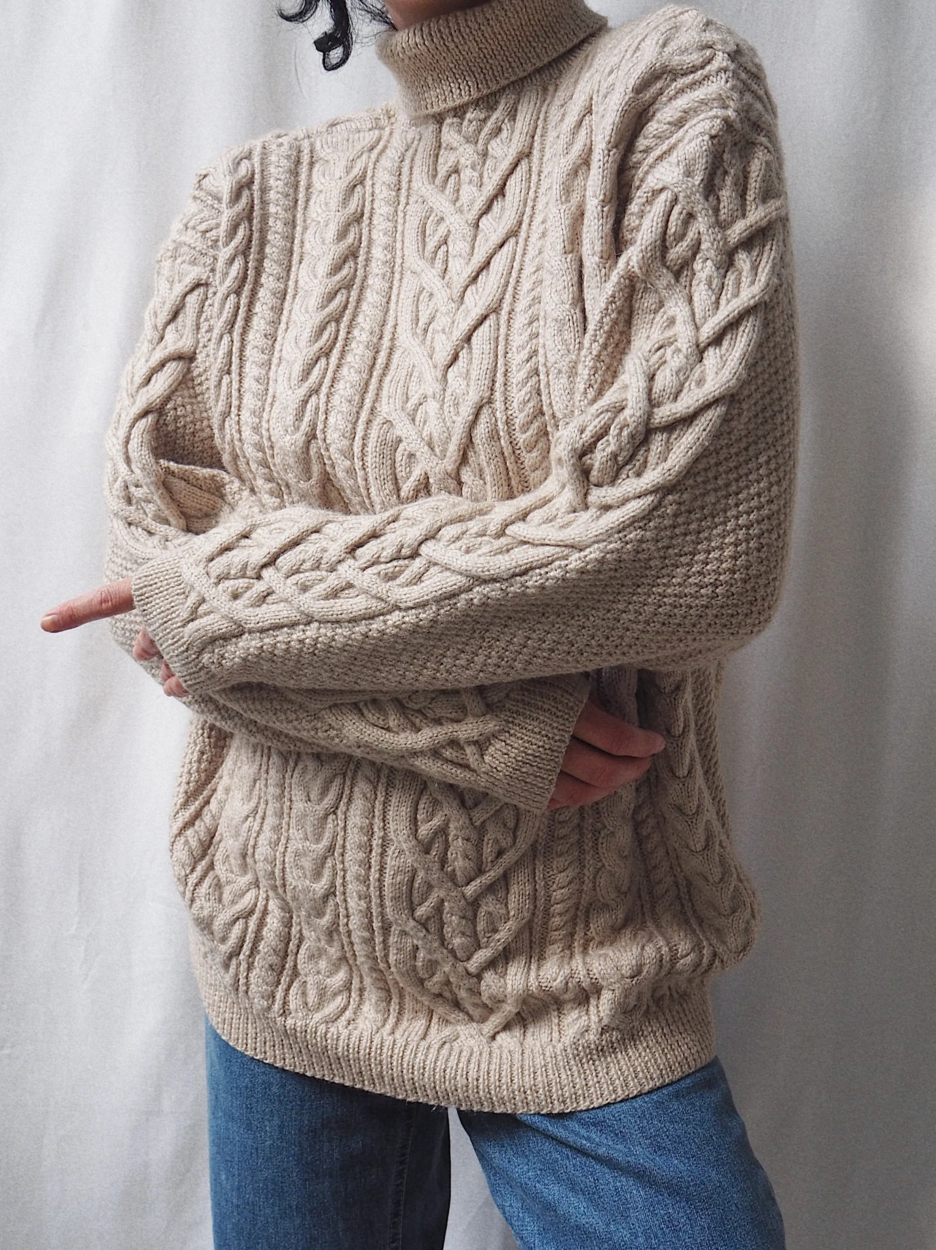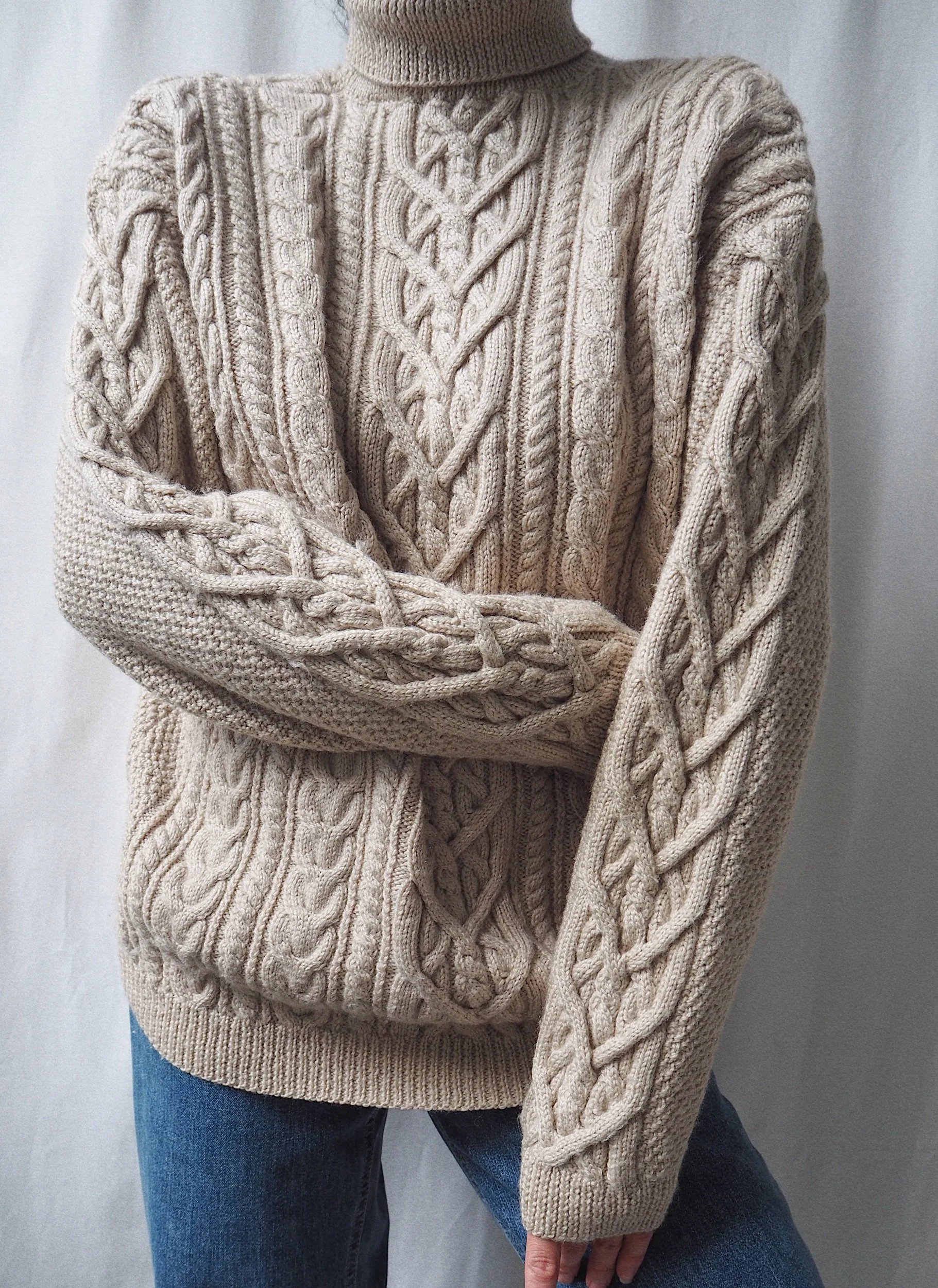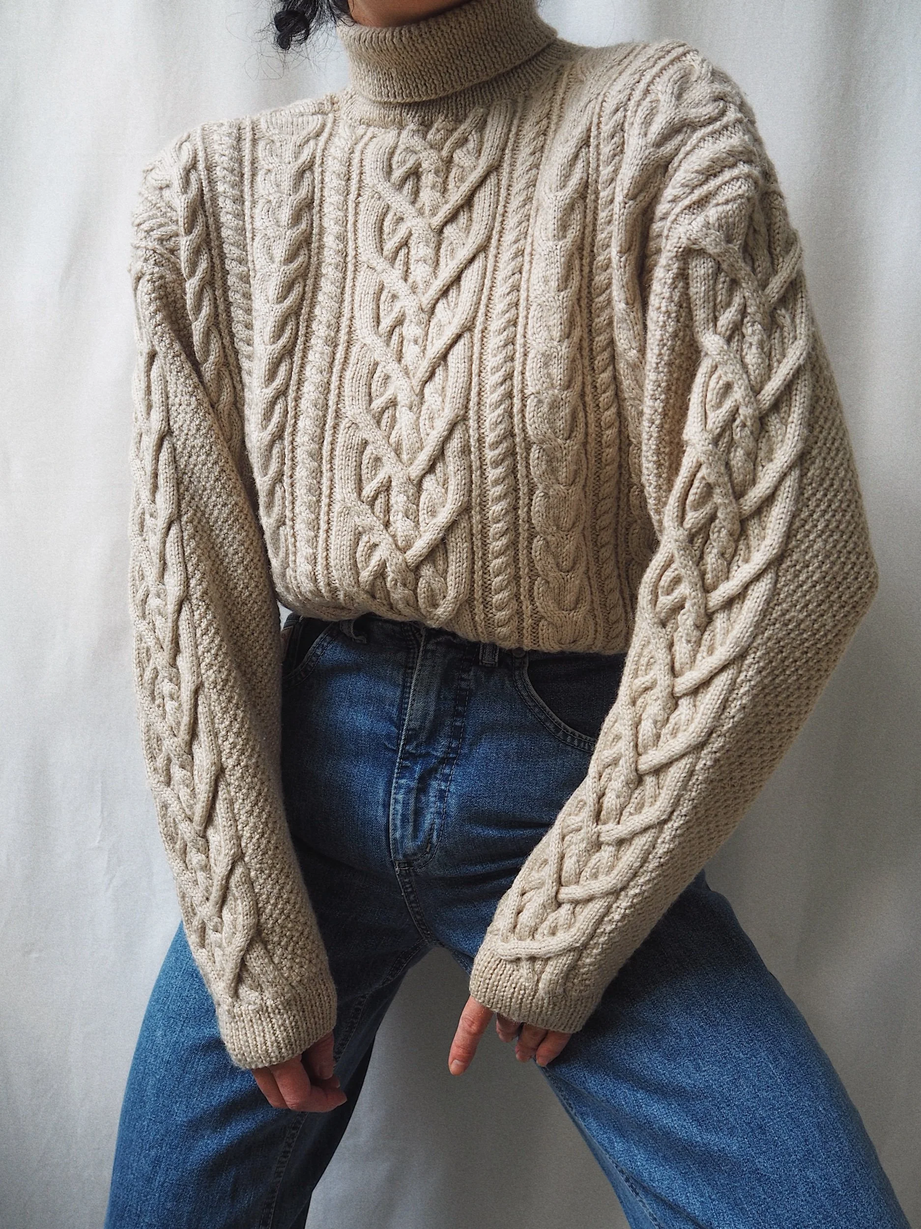 Vintage Chunky Cable Knit Sweater Oat