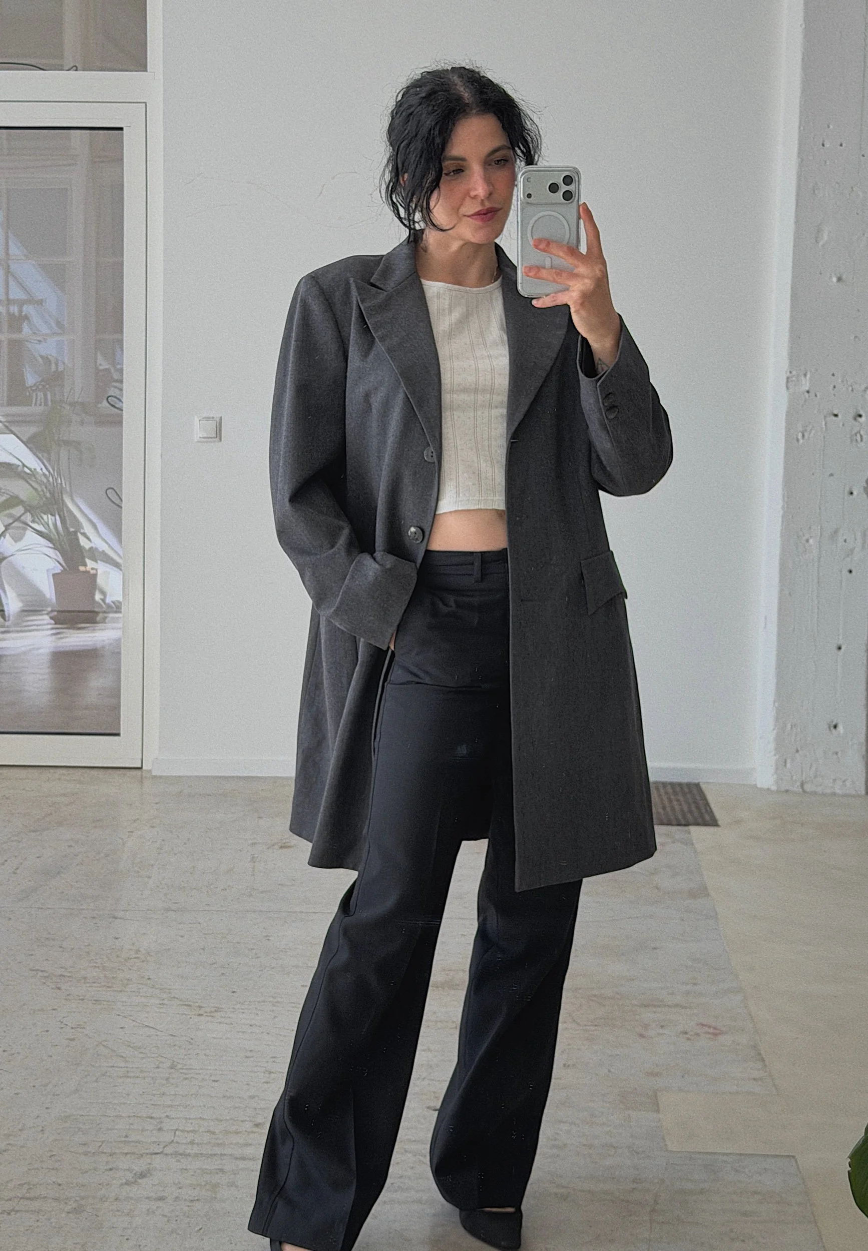 Recommended for sizes XS-M if you want ot wear it oversized, L-XL if you want to wear it more bodyconscious, model is 165cm & a size XS/S
