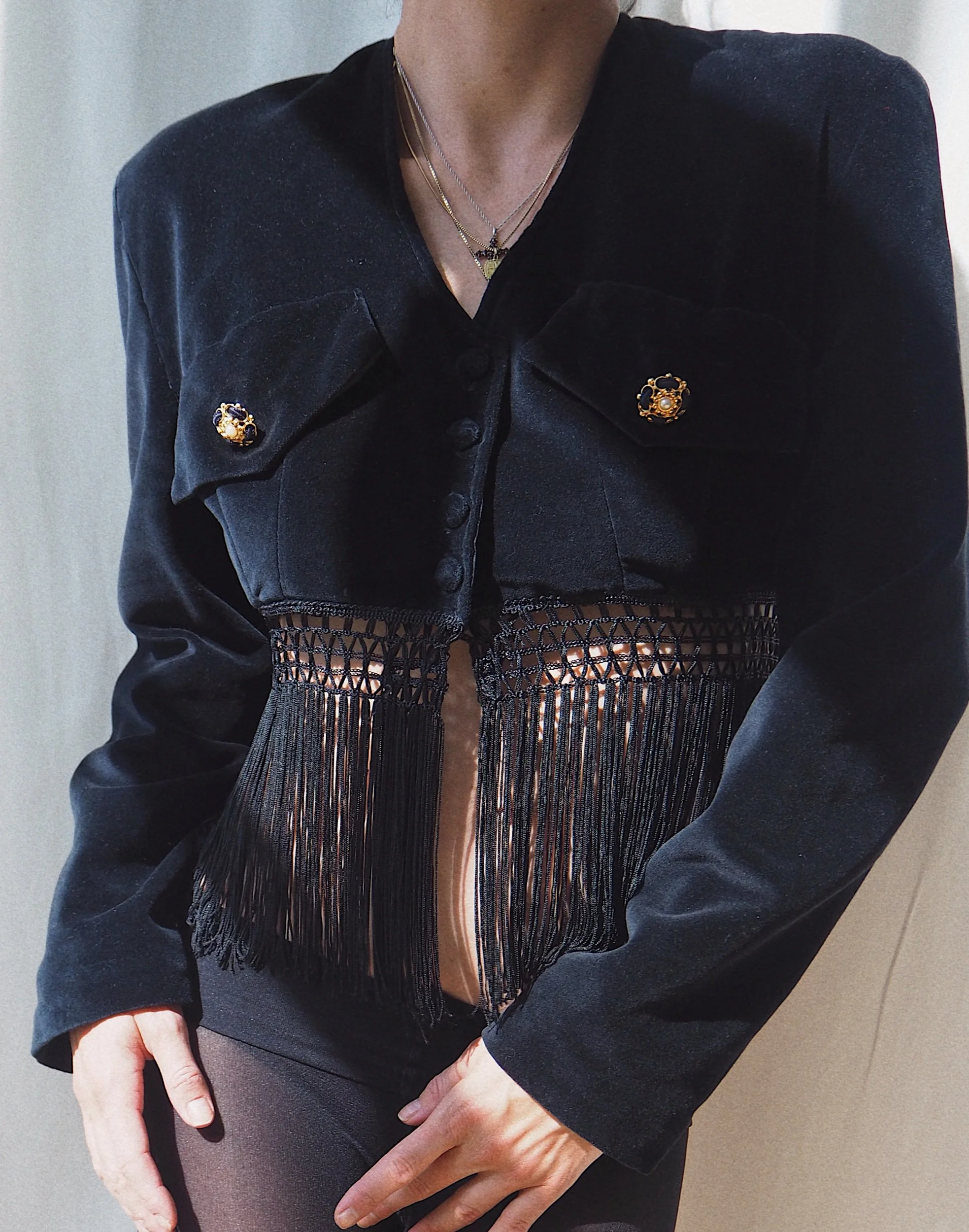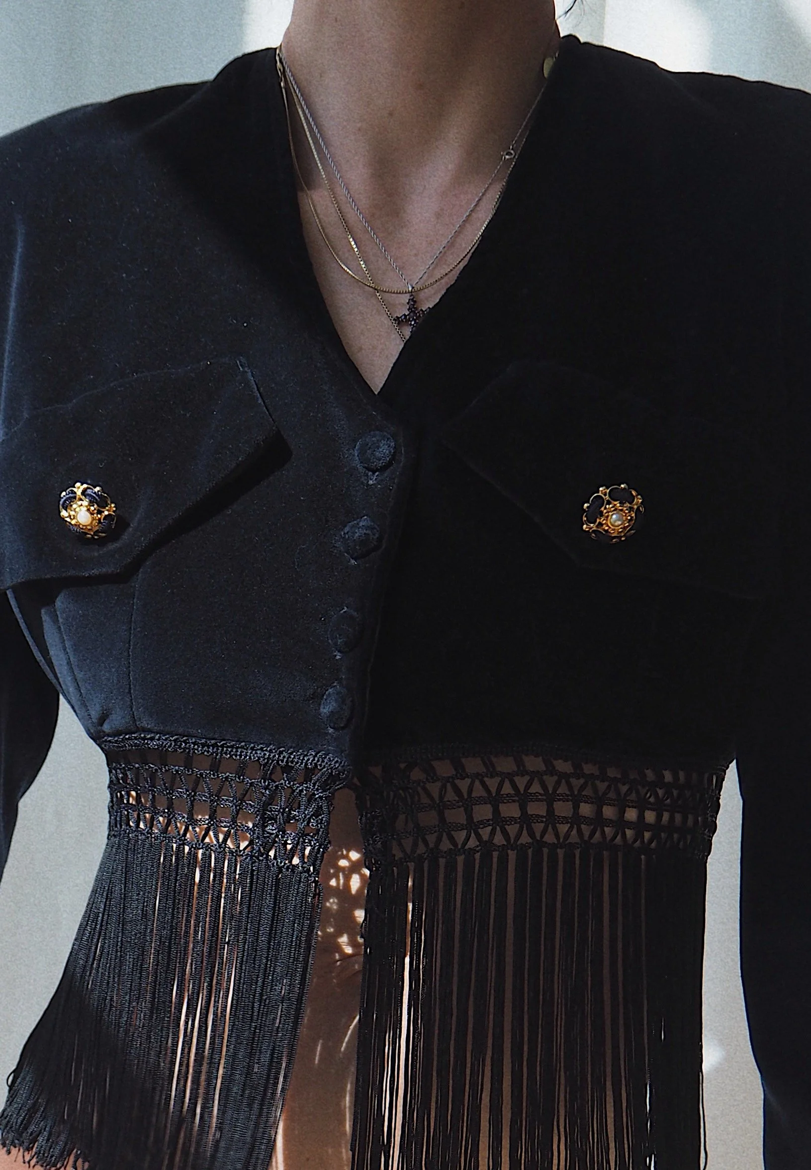 Vintage Elegant Bohemian Velvet Jacket Fringe