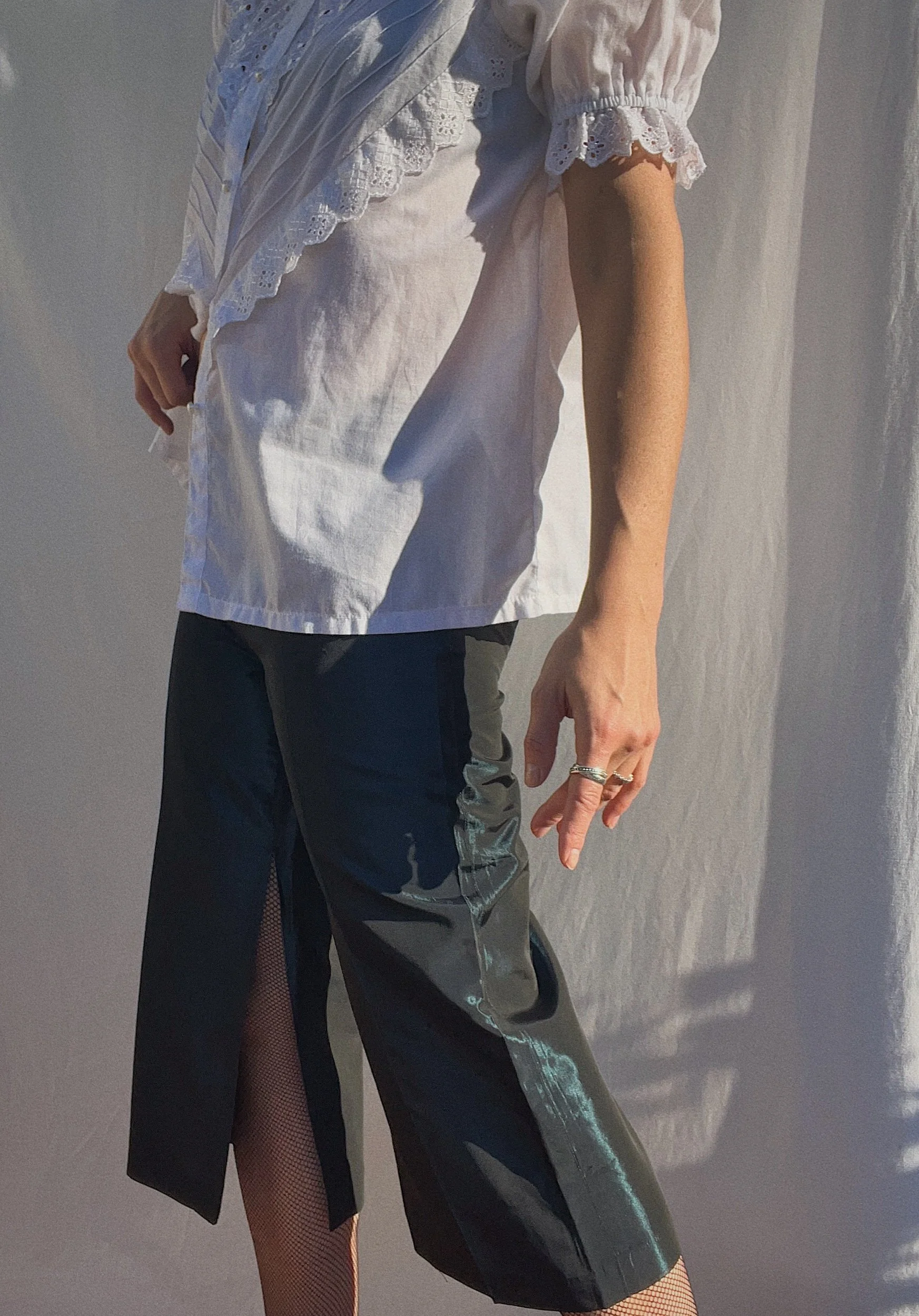 100% acetat, slits on the inner seam for easier movement, can be worn over tights or without, zipper on the side