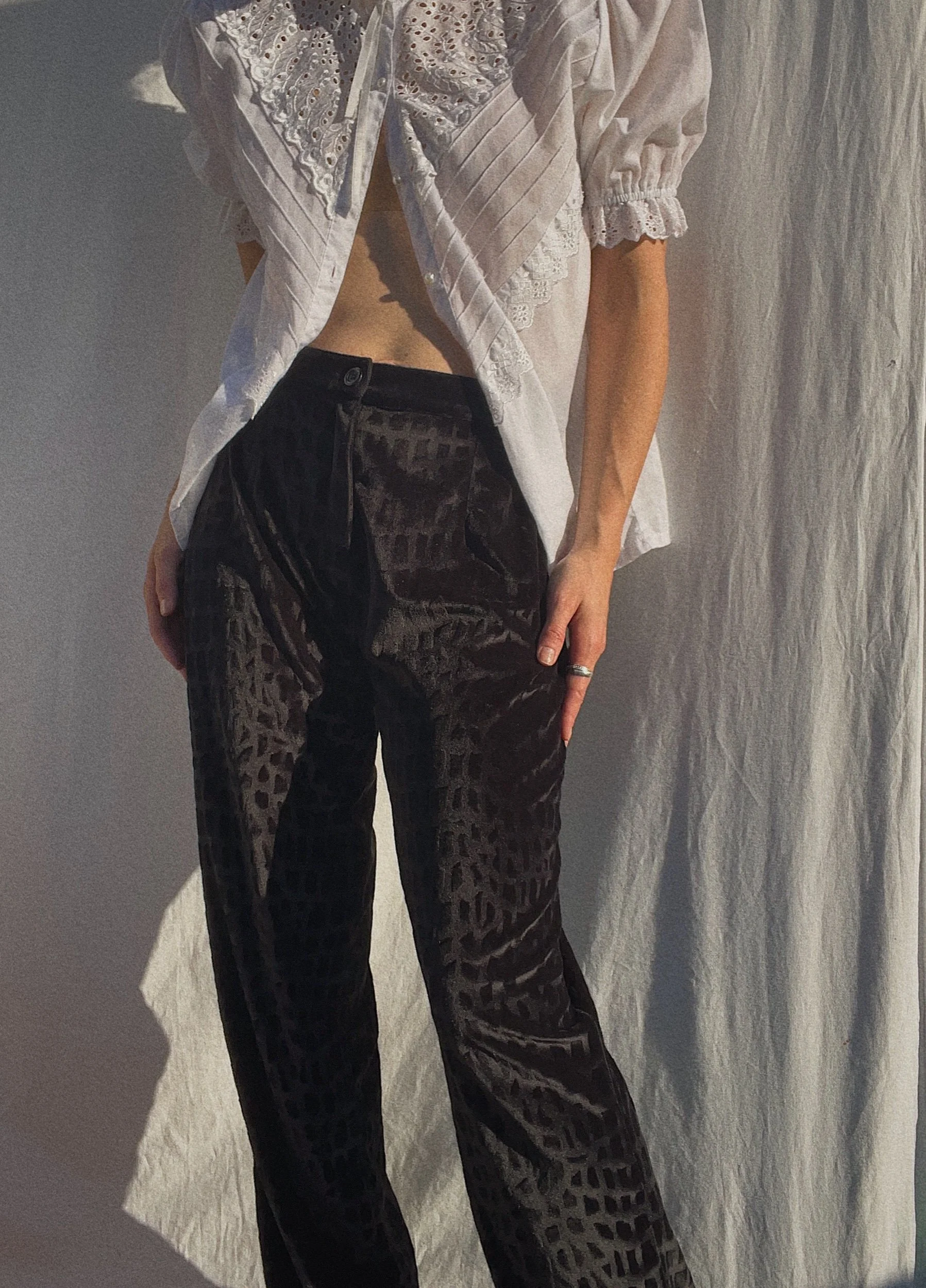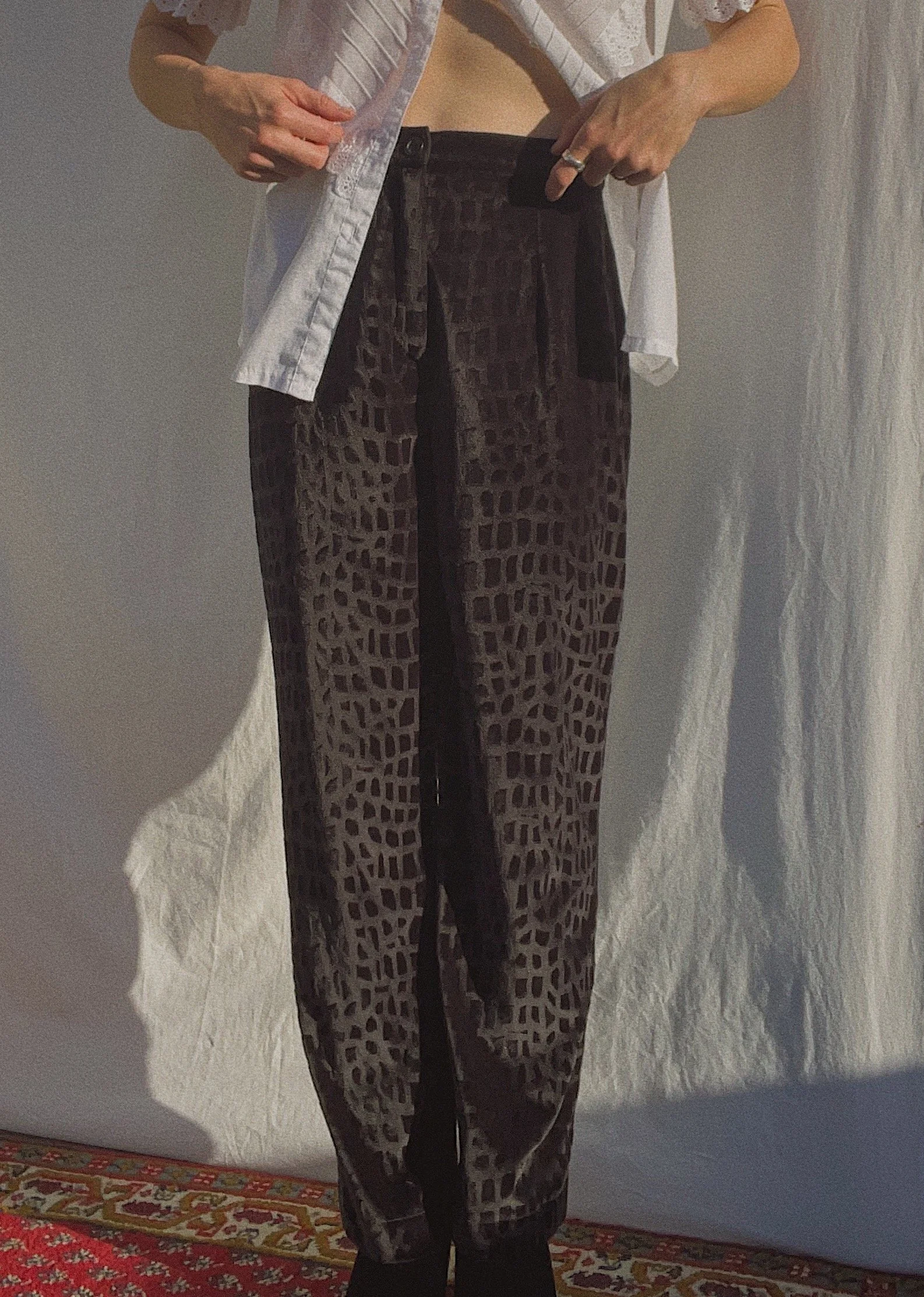 soft pants, 100% polyester, tagged as size 40