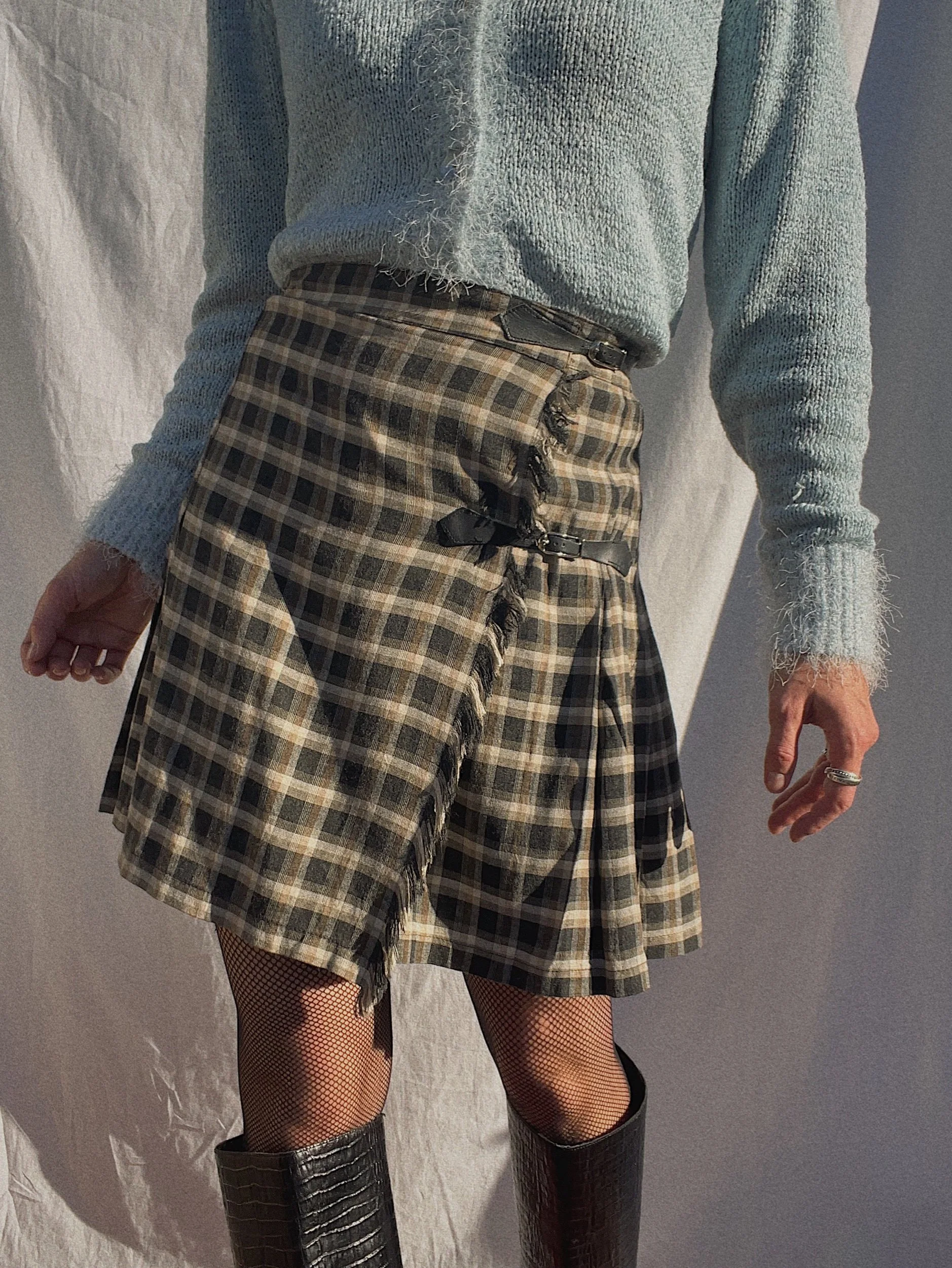 soft pleated skirt, buckles & button to close, no lining, 100% viscose
