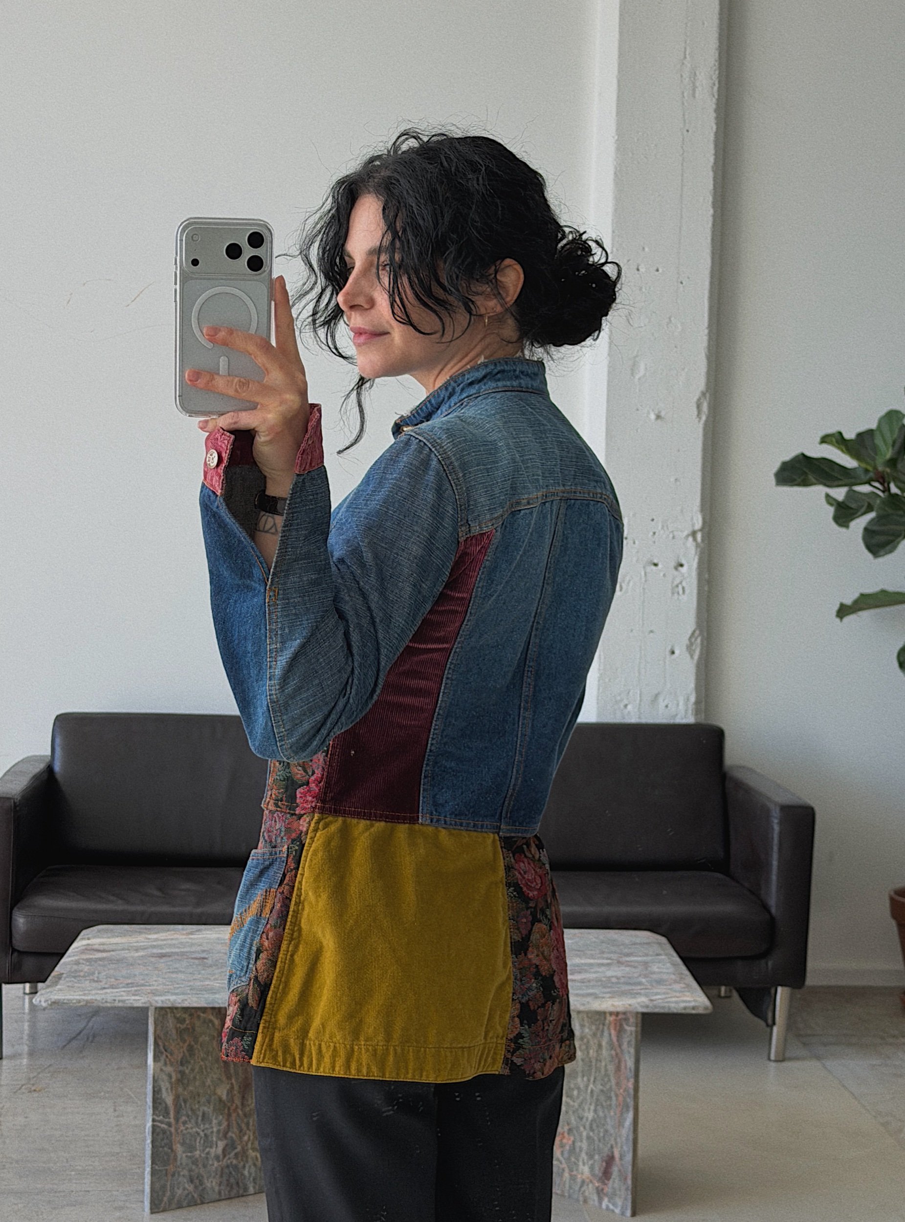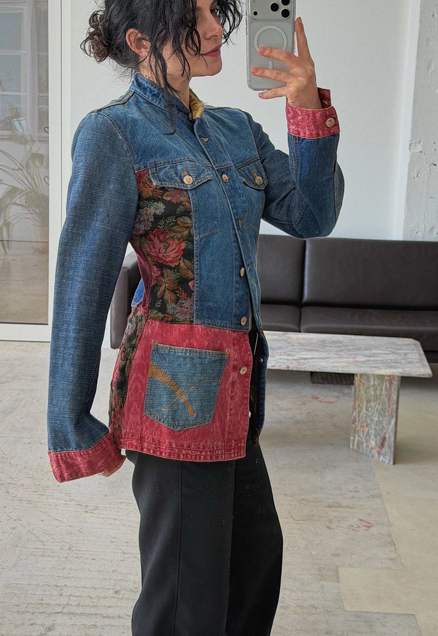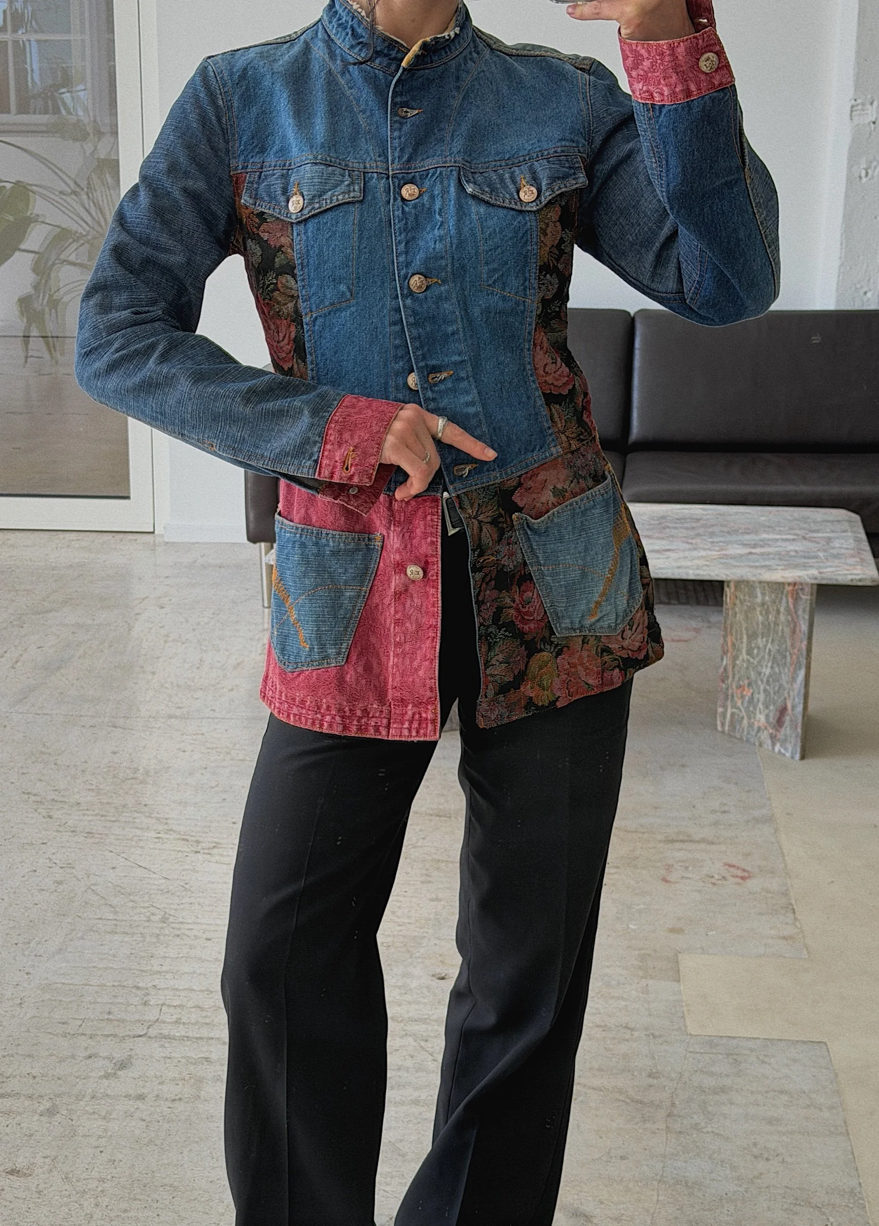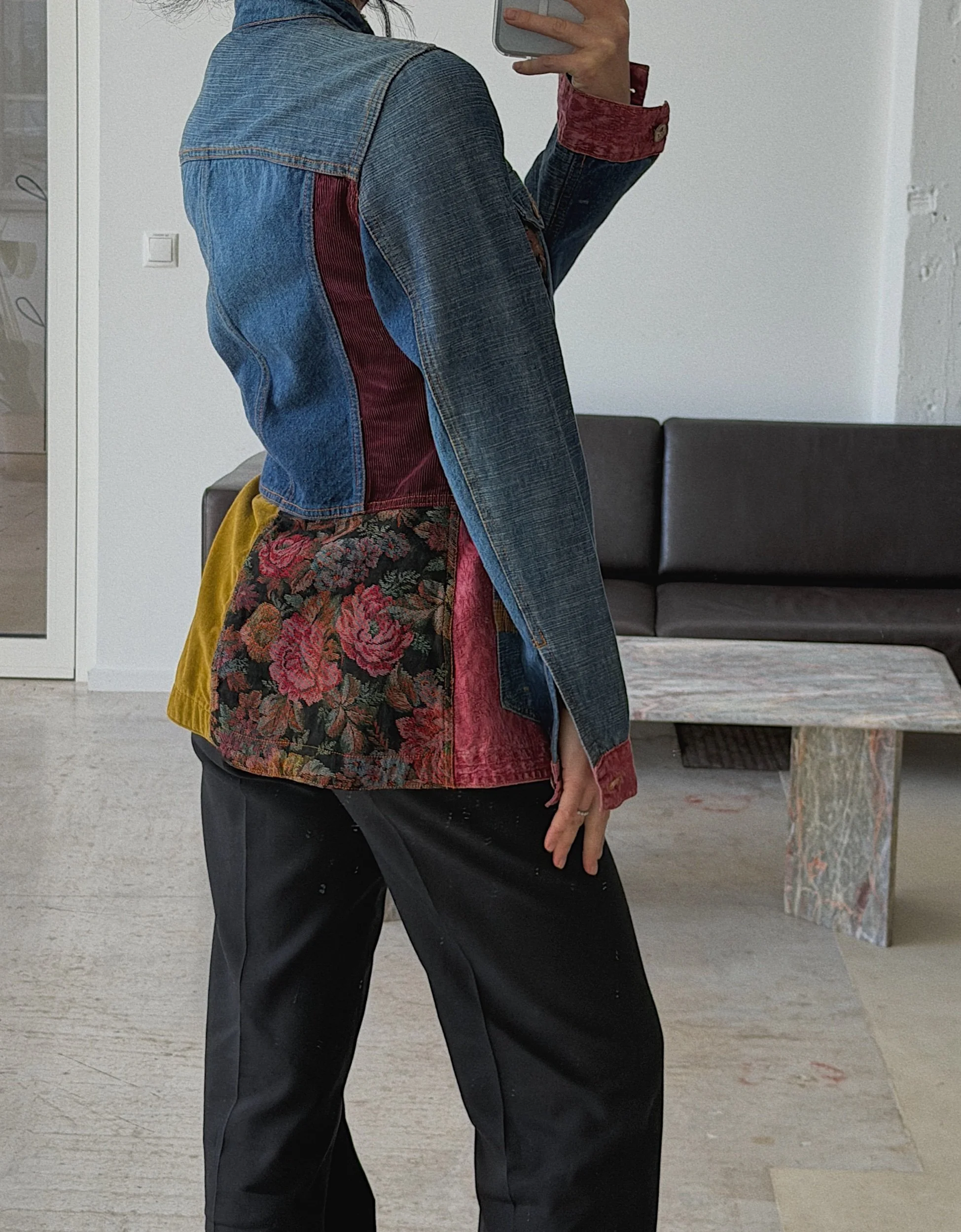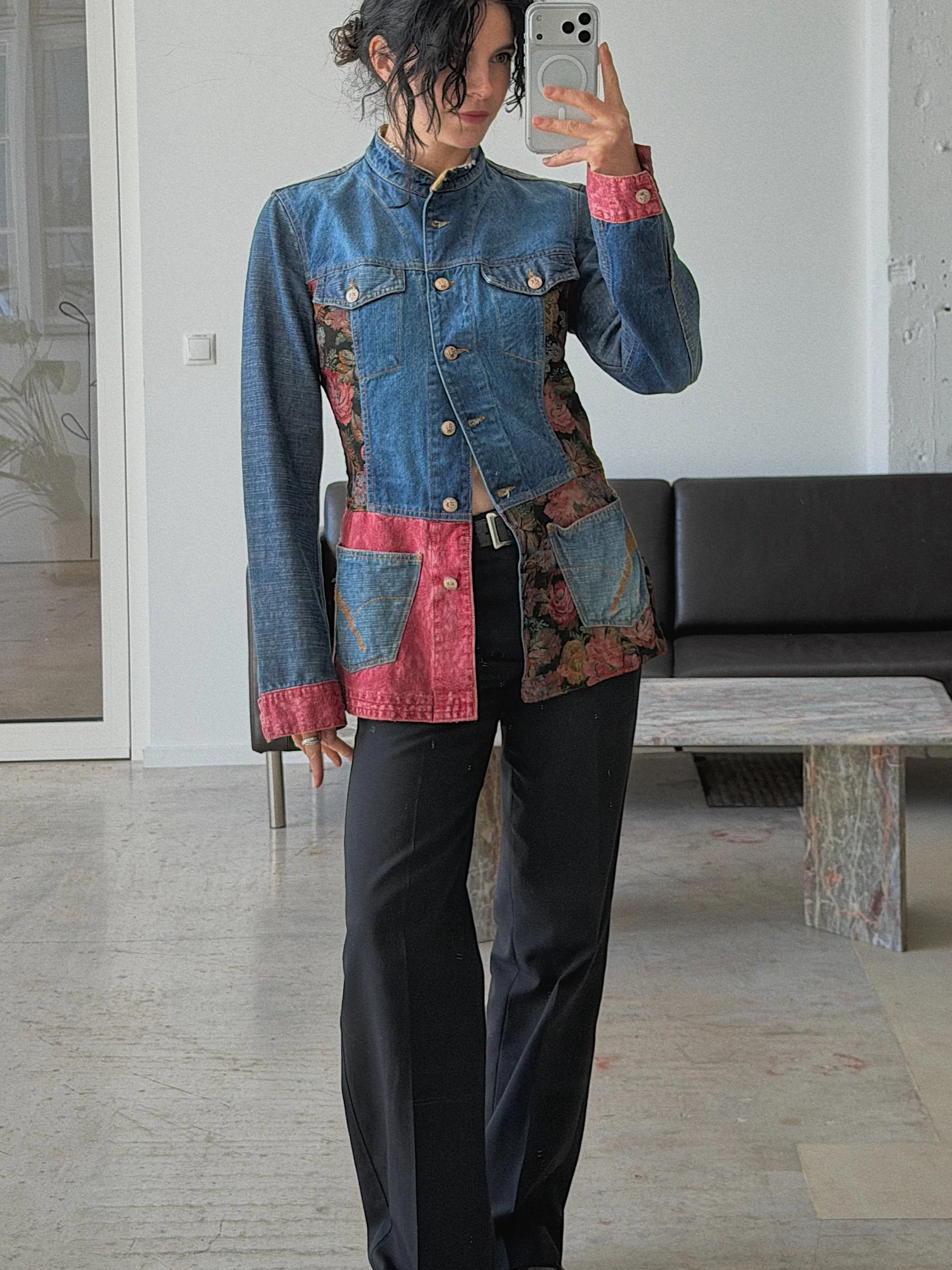 cotton denim with jacquard print patches & corduroy details, INDIAN ROSE size 36