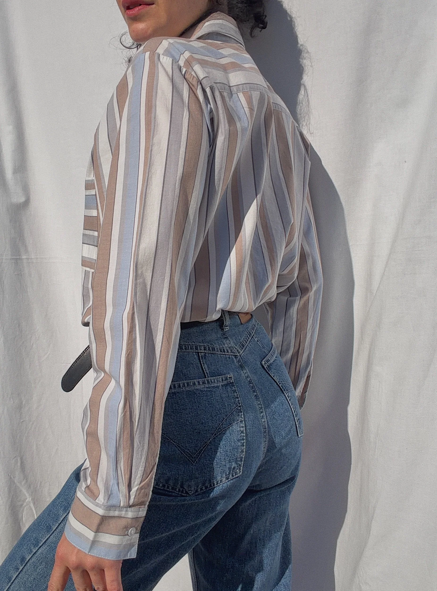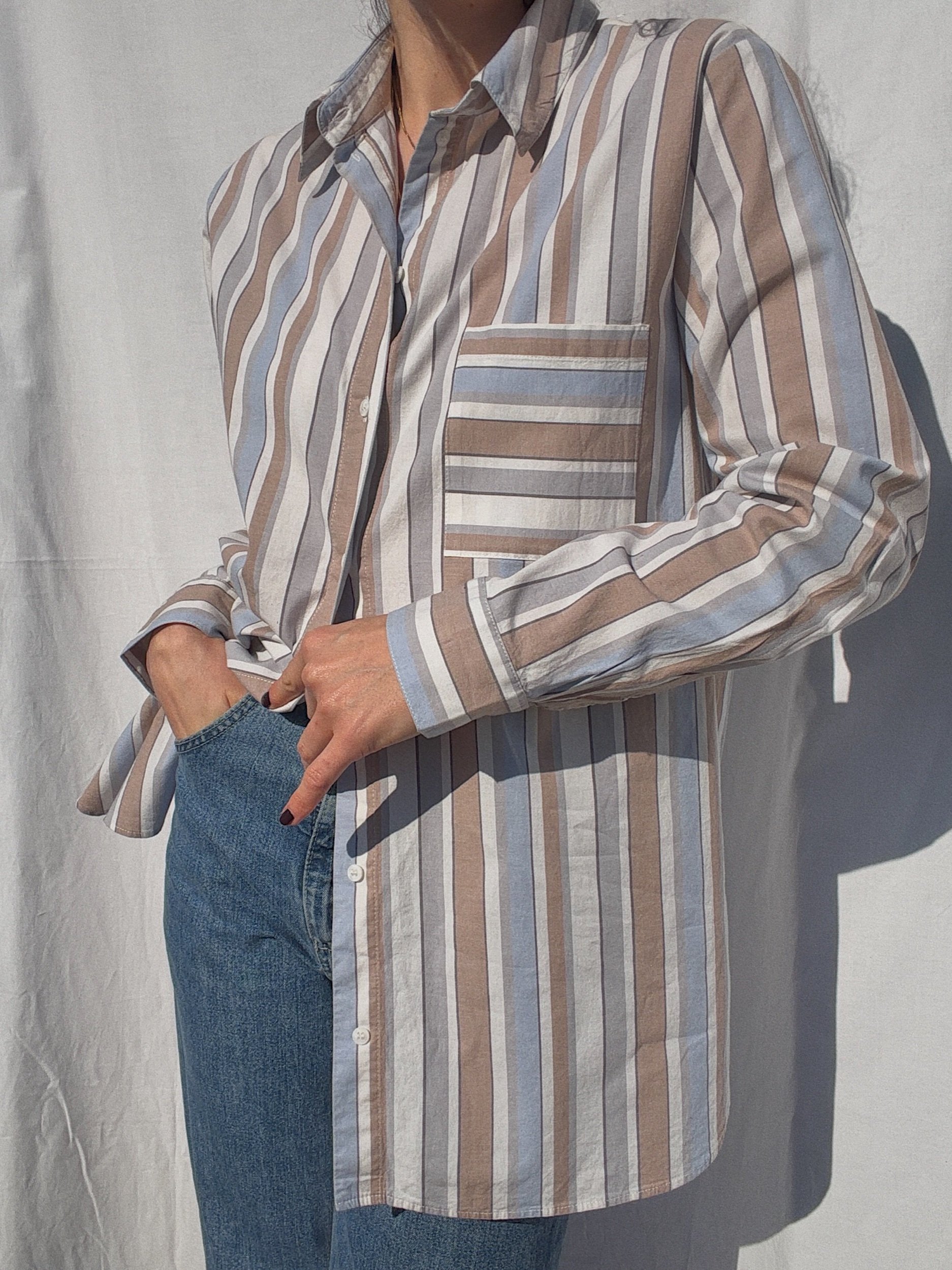 natrual block-striped shirt in soft cotton fabric, perfect for business-casual looks. - Love the vice versa pocket.