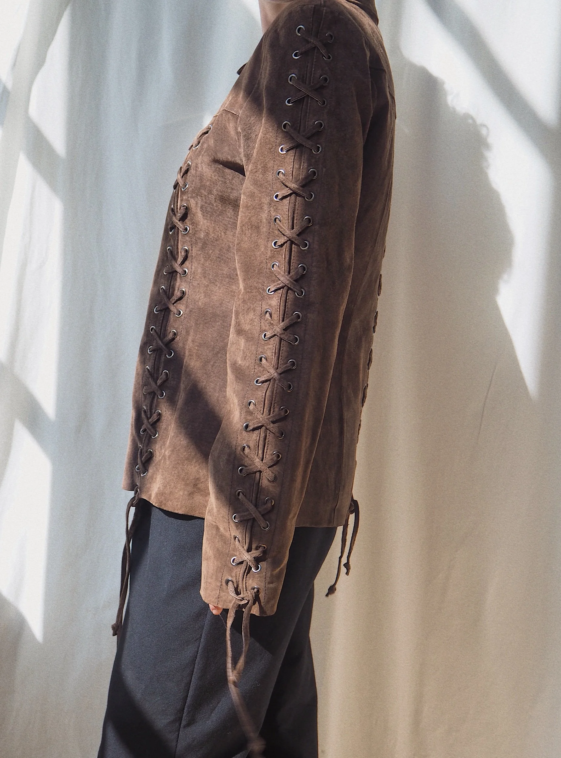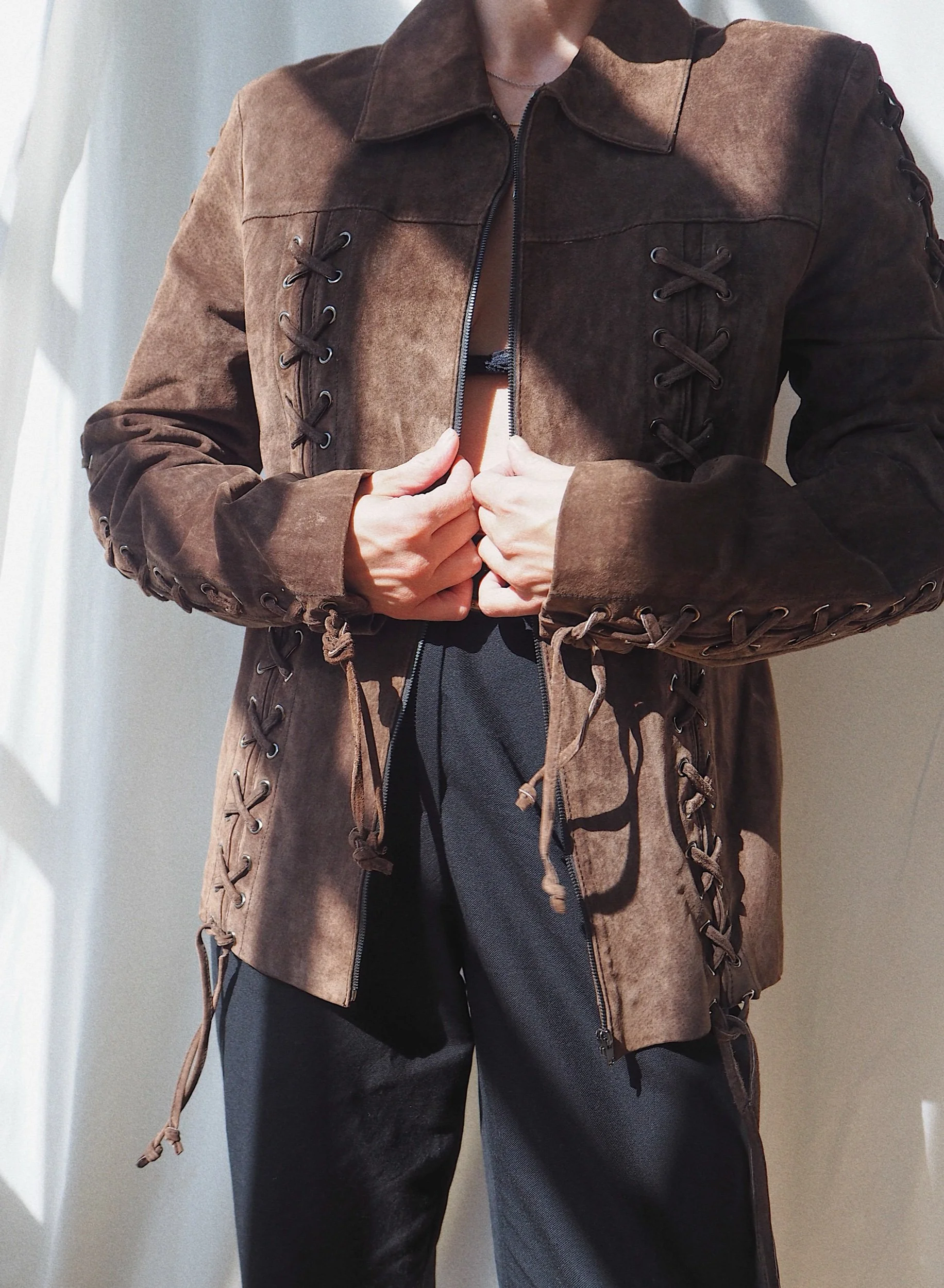 100% genuine leather, lace details on front and back, zipper, fully lined